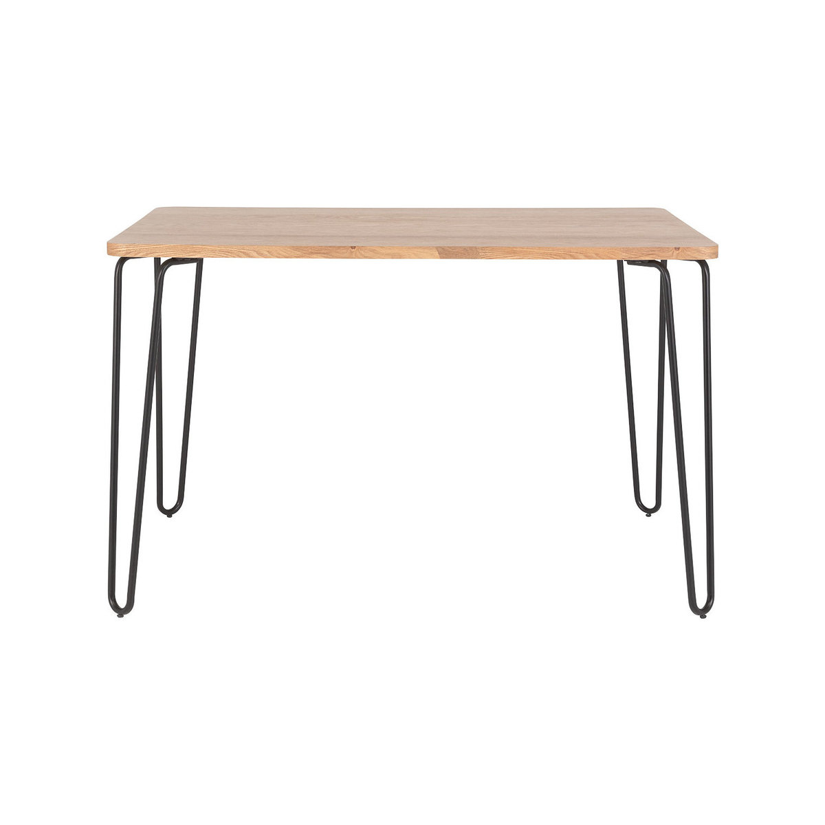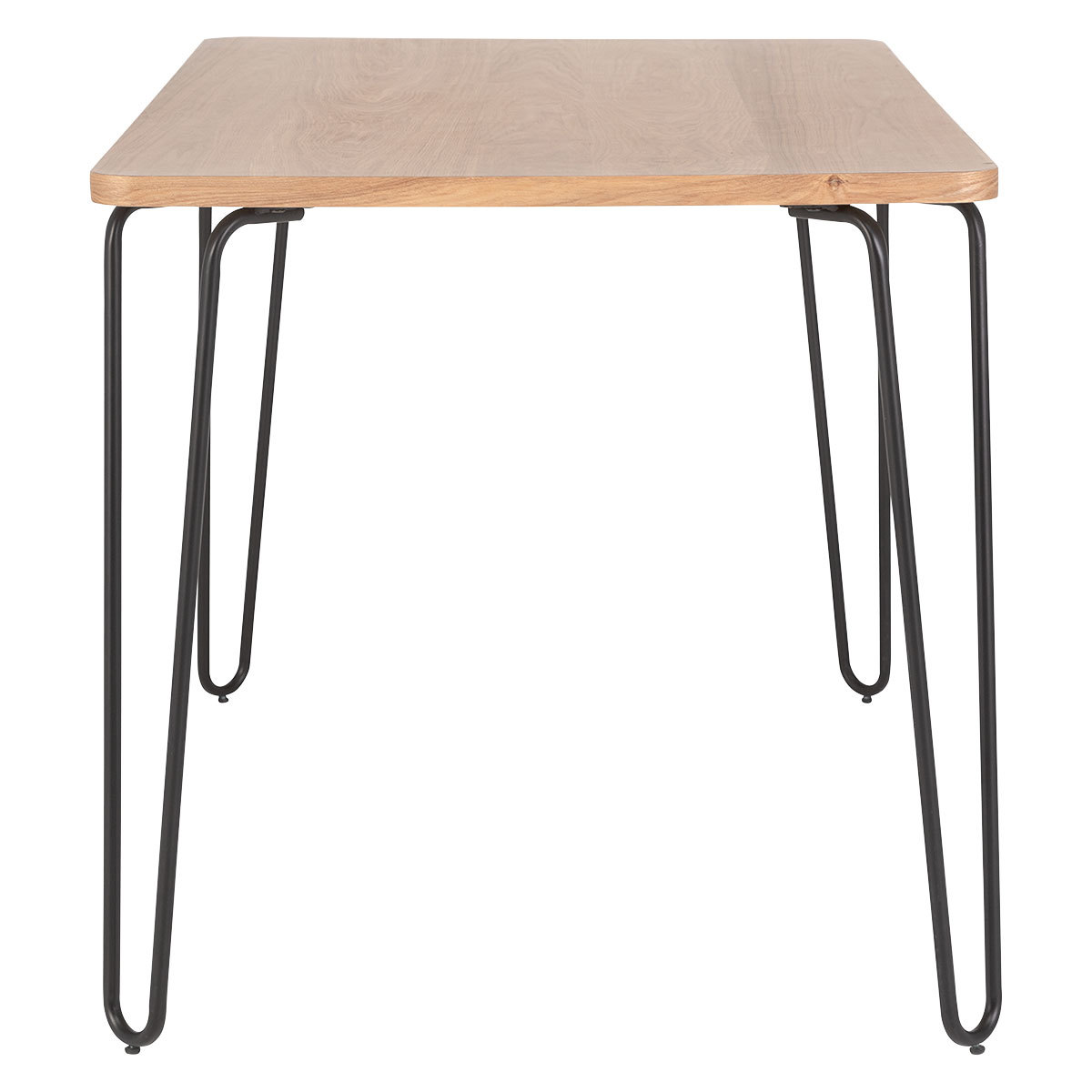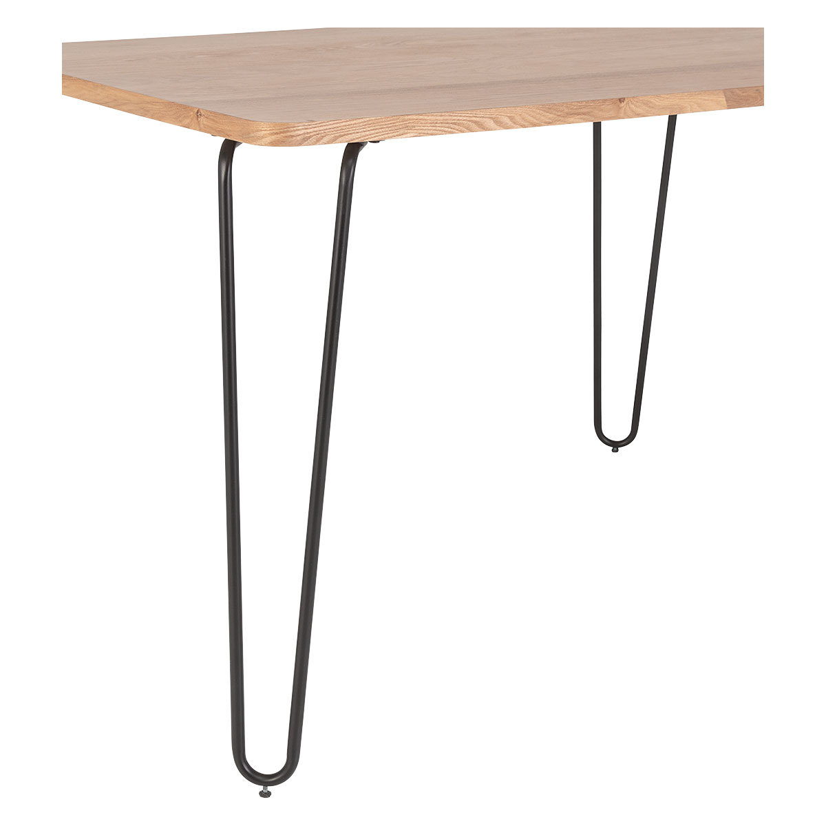 The Tyler ash and black metal 4-6-seater dining table pairs beautifully grained ash veneer with slender powder coated metal legs to create a distinctive design. With a slimline top and open ‘hairpin’ legs, this table allows light to run freely around the room and won’t dominate a space. Perfect for small spaces, this sturdy table will fit perfectly in a kitchen or dining room and is made for everyday use. Part of the Tyler range, it’s available as a bench and as coffee and side table.
