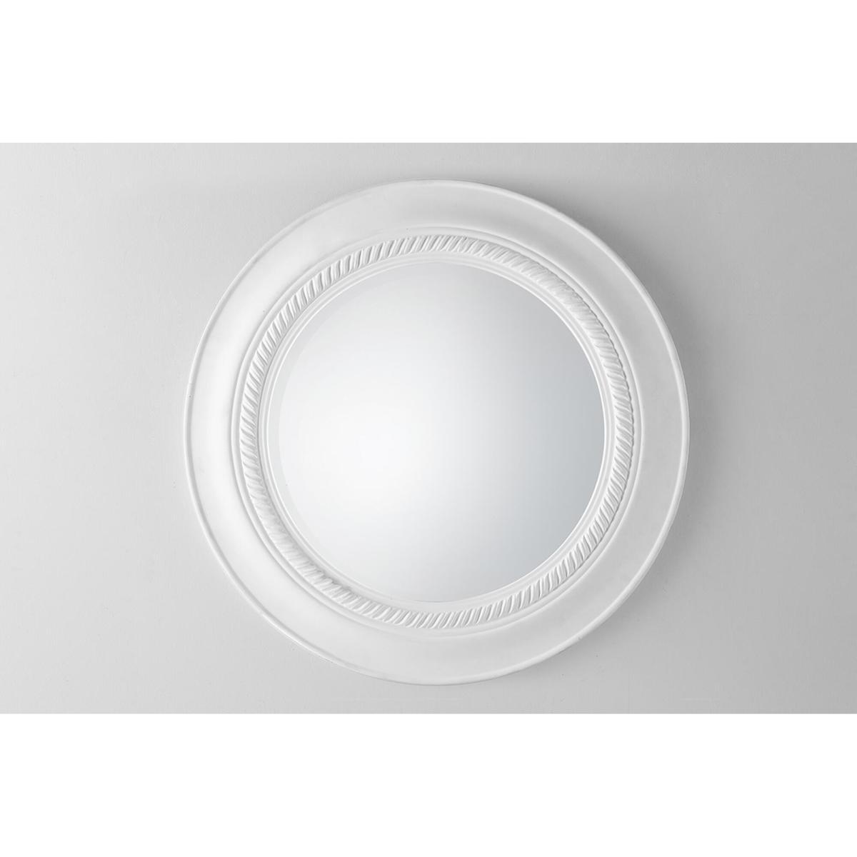Crisp and contemporary, our Tyler Round Wall Mirror in White is a chic accent to beautify a modern home. It has a matt white, old school feel, with a rope design frame that showcases the natural streaks and grain of the wood, beautifully contrasting the crisp glass mirror surface. With its Mid-Century modern look, the Garret will conquer any living space with ease, adding a cool and lively touch to any room. The Tyler Round Wall Mirror is also available in Grey.