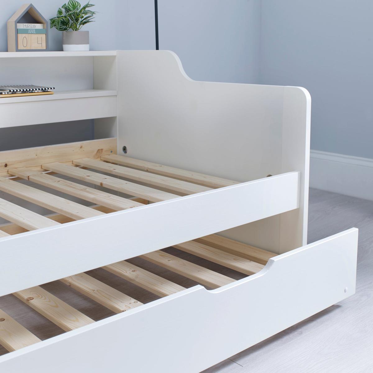 Tyler Single Guest Bed with Trundle and Pocket Mattress - White White
