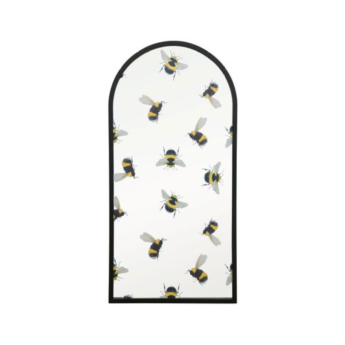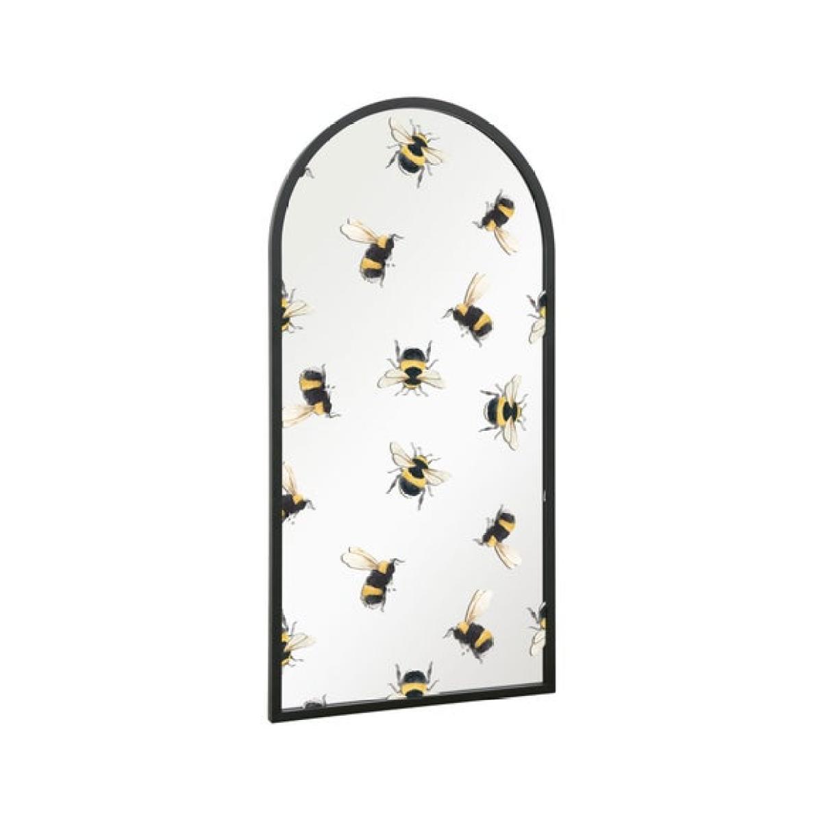* Graceful arched shape * Bumble bee decals * Black metal frame * Key-slot fixing brackets Bring a touch of nature to your wall with this unique mirror, featuring delicate bumble bee decals. Its graceful arched silhouette and black metal frame blend a rustic feel with contemporary style. It’s perfect for living room walls, hallways, or conservatories, and key-slot fixing brackets ensure secure and hassle-free installation. Whether you're reflecting light or adding character, this mirror brings a cheerful accent to any space, and is a lovely way to celebrate nature with a modern twist.