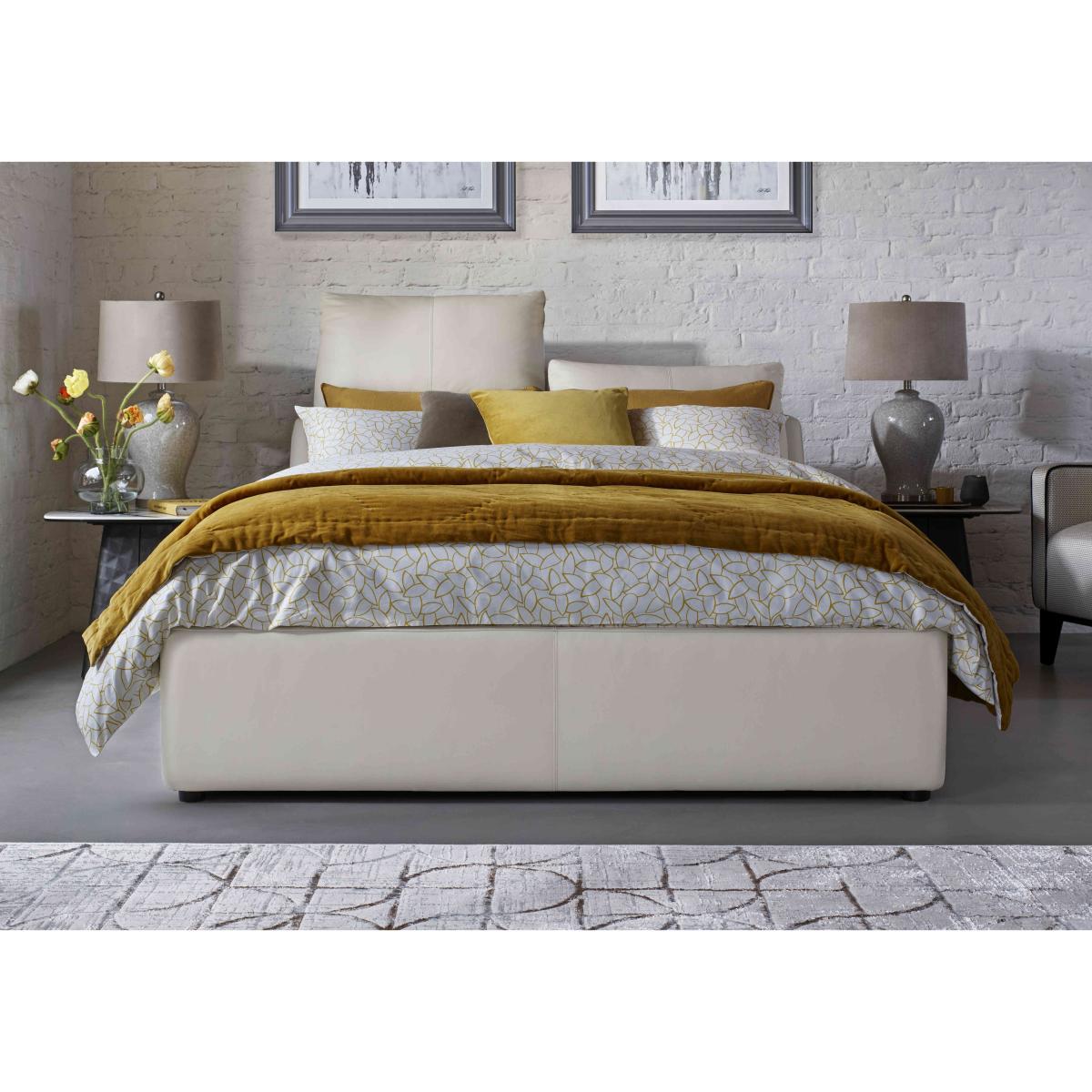 Give your bedroom a contemporary style makeover and treat yourself to spacious extra bedroom storage. Showcasing a fabulous headboard design – double pillow-style headrests that are independently adjustable for perfect-position comfort – the sturdy ottoman bed frames in the Tyrell collection feature maximum-capacity underbed storage spaces. Choose either manual or electric ottoman mechanisms and beautifully tailored upholstery in 100% leather or fabric. The range also includes stylish blanket boxes which double as bedroom seating as well as providing handy extra storage. The Tyrell range is exclusively available at Furniture Village. This leather end-lift ottoman bed base makes relaxing in bed so easy thanks to its adjustable headrest cushions. And the large hidden storage space will keep your bedroom looking tidy. Why you'll love it Upgrade your bedroom style – and your bedroom storage. Contemporary ottoman bed frame has perfect-position comfort built in. Luxurious pillow-style headrest cushions can be moved up and down. Sprung-mechanism ottoman base with locking feature is easy and safe to open and close. Enjoy maximum capacity storage – the underbed compartment is as large as the bed frame. Perfect for lightweight items like duvets, pillows and clothing. Well-crafted and sturdy. A slatted wood base offers great mattress support. Beautiful 100% leather upholstery in an incredibly wide choice of on-trend colours. In king and super king bed sizes. A Furniture Village exclusive. This leather manual ottoman bed frame is part of our Tyrell range. What you need to know Mattress sold separately. Maximum mattress weight is 80 kg for both king and super king bed frames. Please keep hands clear of the mechanism when opening and closing the ottoman. Do not sit on the foot end of this ottoman bed frame when opening. Leather has unique marks and characteristics with variation in colour and texture. Leather softens with use. Deal with any spills promptly. Professional cleaning advised for oil- and grease-based stains.