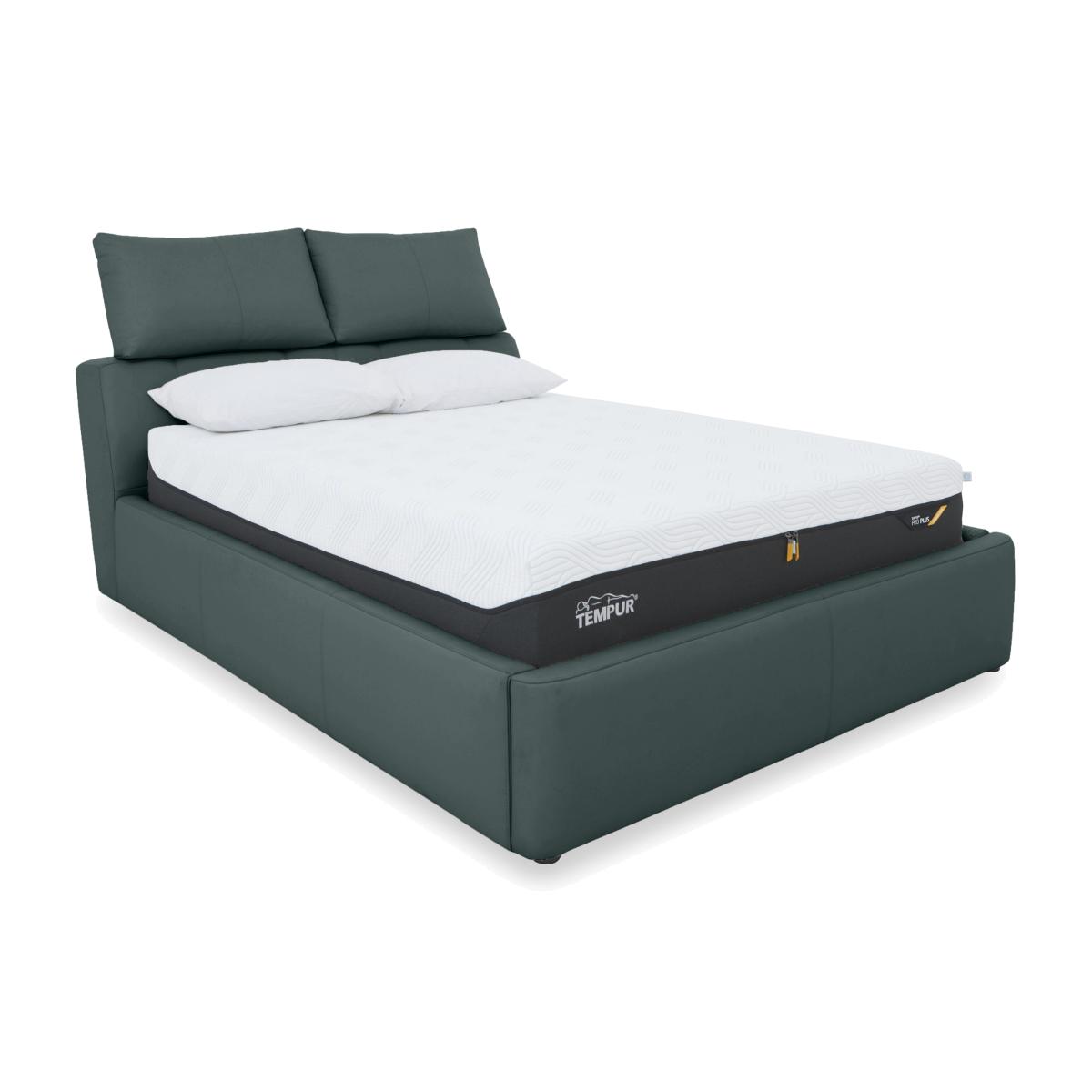 Give your bedroom a contemporary style makeover and treat yourself to spacious extra bedroom storage. Showcasing a fabulous headboard design – double pillow-style headrests that are independently adjustable for perfect-position comfort – the sturdy ottoman bed frames in the Tyrell collection feature maximum-capacity underbed storage spaces. Choose either manual or electric ottoman mechanisms and beautifully tailored upholstery in 100% leather or fabric. The range also includes stylish blanket boxes which double as bedroom seating as well as providing handy extra storage. The Tyrell range is exclusively available at Furniture Village. This leather end-lift ottoman bed base makes relaxing in bed so easy thanks to its adjustable headrest cushions. And the large hidden storage space will keep your bedroom looking tidy. Why you'll love it Upgrade your bedroom style – and your bedroom storage. Contemporary ottoman bed frame has perfect-position comfort built in. Luxurious pillow-style headrest cushions can be moved up and down. Sprung-mechanism ottoman base with locking feature is easy and safe to open and close. Enjoy maximum capacity storage – the underbed compartment is as large as the bed frame. Perfect for lightweight items like duvets, pillows and clothing. Well-crafted and sturdy. A slatted wood base offers great mattress support. Beautiful 100% leather upholstery in an incredibly wide choice of on-trend colours. In king and super king bed sizes. A Furniture Village exclusive. This leather manual ottoman bed frame is part of our Tyrell range. What you need to know Mattress sold separately. Maximum mattress weight is 80 kg for both king and super king bed frames. Please keep hands clear of the mechanism when opening and closing the ottoman. Do not sit on the foot end of this ottoman bed frame when opening. Leather has unique marks and characteristics with variation in colour and texture. Leather softens with use. Deal with any spills promptly. Professional cleaning advised for oil- and grease-based stains.