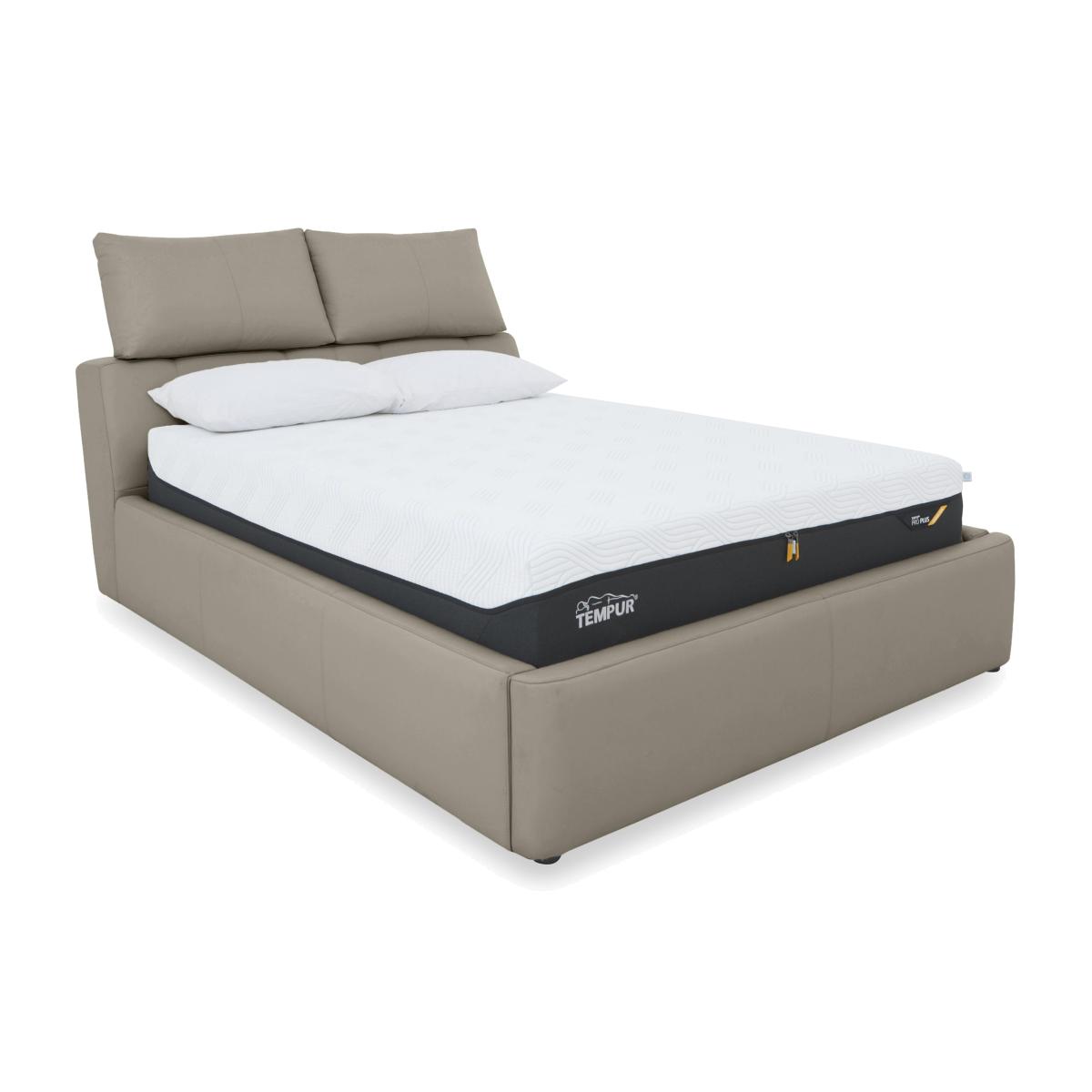 Give your bedroom a contemporary style makeover and treat yourself to spacious extra bedroom storage. Showcasing a fabulous headboard design – double pillow-style headrests that are independently adjustable for perfect-position comfort – the sturdy ottoman bed frames in the Tyrell collection feature maximum-capacity underbed storage spaces. Choose either manual or electric ottoman mechanisms and beautifully tailored upholstery in 100% leather or fabric. The range also includes stylish blanket boxes which double as bedroom seating as well as providing handy extra storage. The Tyrell range is exclusively available at Furniture Village. This leather end-lift ottoman bed base makes relaxing in bed so easy thanks to its adjustable headrest cushions. And the large hidden storage space will keep your bedroom looking tidy. Why you'll love it Upgrade your bedroom style – and your bedroom storage. Contemporary ottoman bed frame has perfect-position comfort built in. Luxurious pillow-style headrest cushions can be moved up and down. Sprung-mechanism ottoman base with locking feature is easy and safe to open and close. Enjoy maximum capacity storage – the underbed compartment is as large as the bed frame. Perfect for lightweight items like duvets, pillows and clothing. Well-crafted and sturdy. A slatted wood base offers great mattress support. Beautiful 100% leather upholstery in an incredibly wide choice of on-trend colours. In king and super king bed sizes. A Furniture Village exclusive. This leather manual ottoman bed frame is part of our Tyrell range. What you need to know Mattress sold separately. Maximum mattress weight is 80 kg for both king and super king bed frames. Please keep hands clear of the mechanism when opening and closing the ottoman. Do not sit on the foot end of this ottoman bed frame when opening. Leather has unique marks and characteristics with variation in colour and texture. Leather softens with use. Deal with any spills promptly. Professional cleaning advised for oil- and grease-based stains.