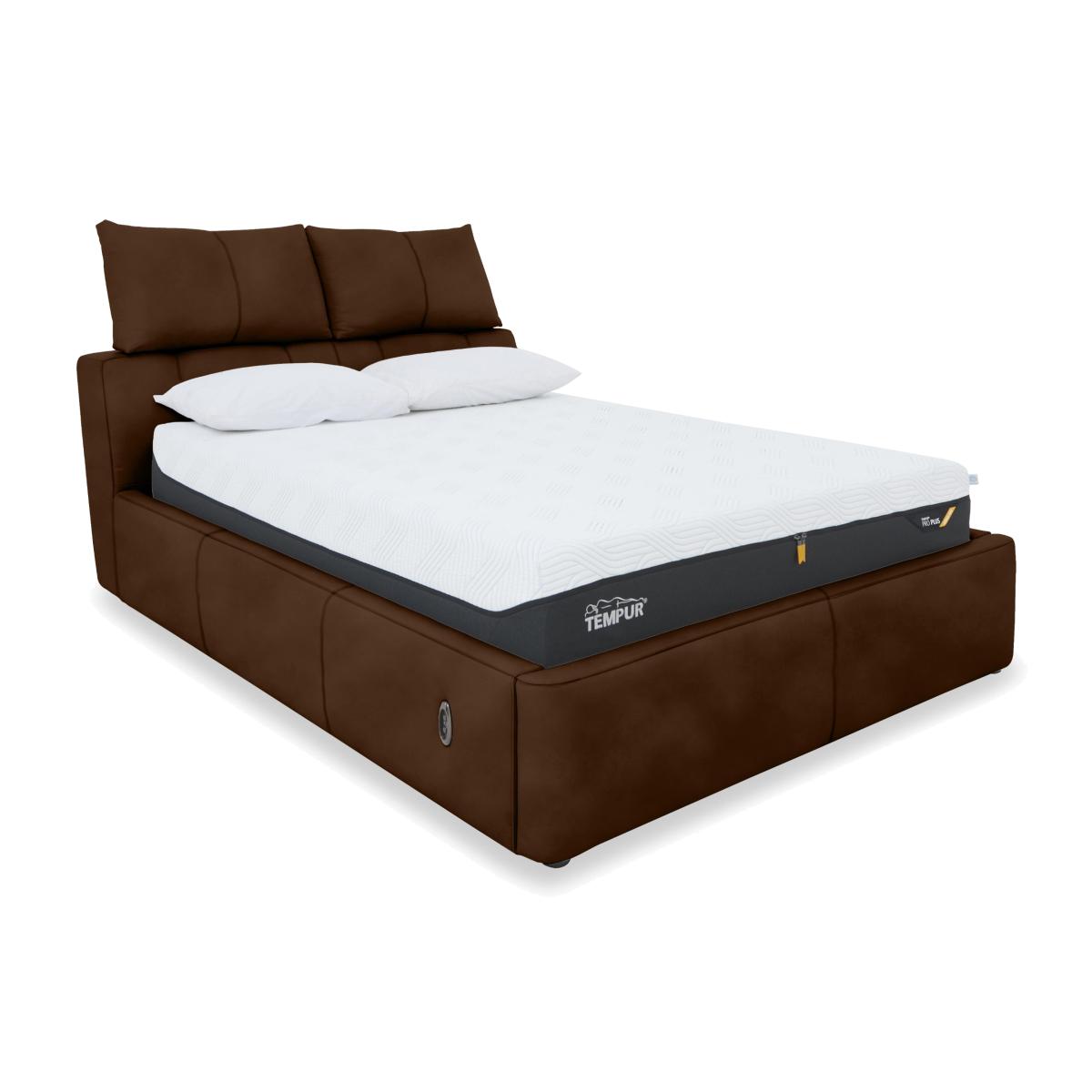 Give your bedroom a contemporary style makeover and treat yourself to spacious extra bedroom storage. Showcasing a fabulous headboard design – double pillow-style headrests that are independently adjustable for perfect-position comfort – the sturdy ottoman bed frames in the Tyrell collection feature maximum-capacity underbed storage spaces. Choose either manual or electric ottoman mechanisms and beautifully tailored upholstery in 100% leather or fabric. The range also includes stylish blanket boxes which double as bedroom seating as well as providing handy extra storage. The Tyrell range is exclusively available at Furniture Village. With adjustable pillow-style headrests, an electric-powered storage base and beautiful fabric upholstery, this ottoman bed frame is the last word in style with storage. Only at Furniture Village. Why you'll love it Upgrade your bedroom style – and your bedroom storage. Contemporary ottoman bed frame has perfect-position comfort built in. Luxurious pillow-style headrest cushions can be moved up and down. Electric-powered ottoman base is effortlessly easy to open and close. Enjoy maximum capacity storage – the underbed compartment is as large as the bed frame. Perfect for lightweight items like duvets, pillows and clothing. Simple touch-button controls with safety locking feature and a USB port. Well-crafted and sturdy. A slatted wood base offers great mattress support. Beautiful fabric upholstery in an incredibly wide choice of on-trend colours. Also available with 100% leather upholstery. In king and super king bed sizes. A Furniture Village exclusive. This fabric electric ottoman bed frame is part of our Tyrell range. What you need to know Mattress sold separately. Maximum mattress weight is 80 kg for both king and super king bed frames. Please keep hands clear of the mechanism when opening and closing the ottoman. Do not sit on the foot end of this ottoman bed frame when opening. Clean regularly using a soft brush or vacuum with the curtain attachment. Deal with any spills promptly. Professional cleaning advised for oil- and grease-based stains. Some fabrics can show wear on areas of more use or in direct sunlight.