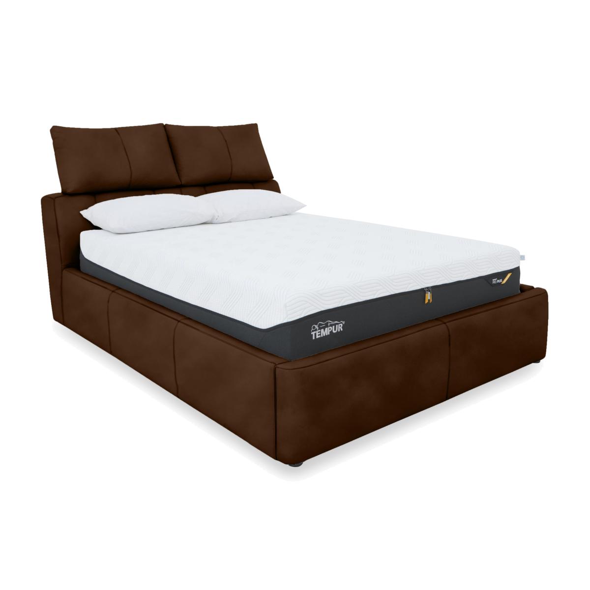 Give your bedroom a contemporary style makeover and treat yourself to spacious extra bedroom storage. Showcasing a fabulous headboard design – double pillow-style headrests that are independently adjustable for perfect-position comfort – the sturdy ottoman bed frames in the Tyrell collection feature maximum-capacity underbed storage spaces. Choose either manual or electric ottoman mechanisms and beautifully tailored upholstery in 100% leather or fabric. The range also includes stylish blanket boxes which double as bedroom seating as well as providing handy extra storage. The Tyrell range is exclusively available at Furniture Village. Enjoy more bedroom storage with this stunning ottoman bed frame. The pillow-style headrest cushions are independently adjustable. Available in a huge choice of fabrics. Why you'll love it Upgrade your bedroom style – and your bedroom storage. Contemporary ottoman bed frame has perfect-position comfort built in. Luxurious pillow-style headrest cushions can be moved up and down. Sprung-mechanism ottoman base with locking feature is easy and safe to open and close. Enjoy maximum capacity storage – the underbed compartment is as large as the bed frame. Perfect for lightweight items like duvets, pillows and clothing. Well-crafted and sturdy. A slatted wood base offers great mattress support. Beautiful fabric upholstery in an incredibly wide choice of on-trend colours. Also available with 100% leather upholstery. In king and super king bed sizes. A Furniture Village exclusive. This fabric manual ottoman bed frame is part of our Tyrell range. What you need to know Mattress sold separately. Maximum mattress weight is 80 kg for both king and super king bed frames. Please keep hands clear of the mechanism when opening and closing the ottoman. Do not sit on the foot end of this ottoman bed frame when opening. Clean regularly using a soft brush or vacuum with the curtain attachment. Deal with any spills promptly. Professional cleaning advised for oil- and grease-based stains. Some fabrics can show wear on areas of more use or in direct sunlight.
