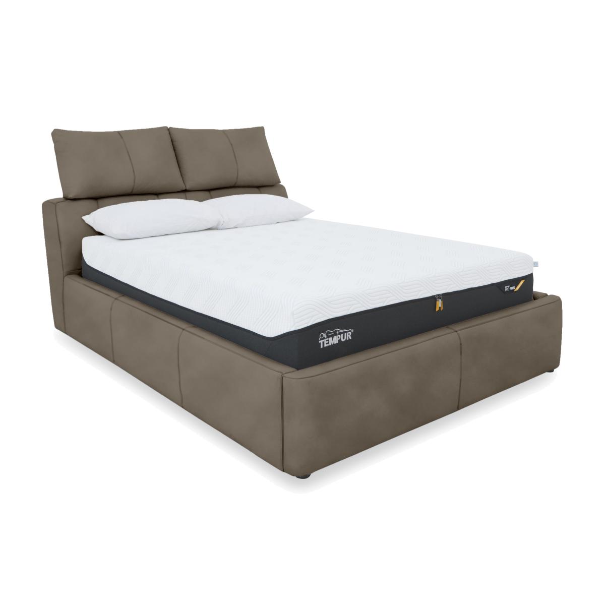 Give your bedroom a contemporary style makeover and treat yourself to spacious extra bedroom storage. Showcasing a fabulous headboard design – double pillow-style headrests that are independently adjustable for perfect-position comfort – the sturdy ottoman bed frames in the Tyrell collection feature maximum-capacity underbed storage spaces. Choose either manual or electric ottoman mechanisms and beautifully tailored upholstery in 100% leather or fabric. The range also includes stylish blanket boxes which double as bedroom seating as well as providing handy extra storage. The Tyrell range is exclusively available at Furniture Village. Enjoy more bedroom storage with this stunning ottoman bed frame. The pillow-style headrest cushions are independently adjustable. Available in a huge choice of fabrics. Why you'll love it Upgrade your bedroom style – and your bedroom storage. Contemporary ottoman bed frame has perfect-position comfort built in. Luxurious pillow-style headrest cushions can be moved up and down. Sprung-mechanism ottoman base with locking feature is easy and safe to open and close. Enjoy maximum capacity storage – the underbed compartment is as large as the bed frame. Perfect for lightweight items like duvets, pillows and clothing. Well-crafted and sturdy. A slatted wood base offers great mattress support. Beautiful fabric upholstery in an incredibly wide choice of on-trend colours. Also available with 100% leather upholstery. In king and super king bed sizes. A Furniture Village exclusive. This fabric manual ottoman bed frame is part of our Tyrell range. What you need to know Mattress sold separately. Maximum mattress weight is 80 kg for both king and super king bed frames. Please keep hands clear of the mechanism when opening and closing the ottoman. Do not sit on the foot end of this ottoman bed frame when opening. Clean regularly using a soft brush or vacuum with the curtain attachment. Deal with any spills promptly. Professional cleaning advised for oil- and grease-based stains. Some fabrics can show wear on areas of more use or in direct sunlight.