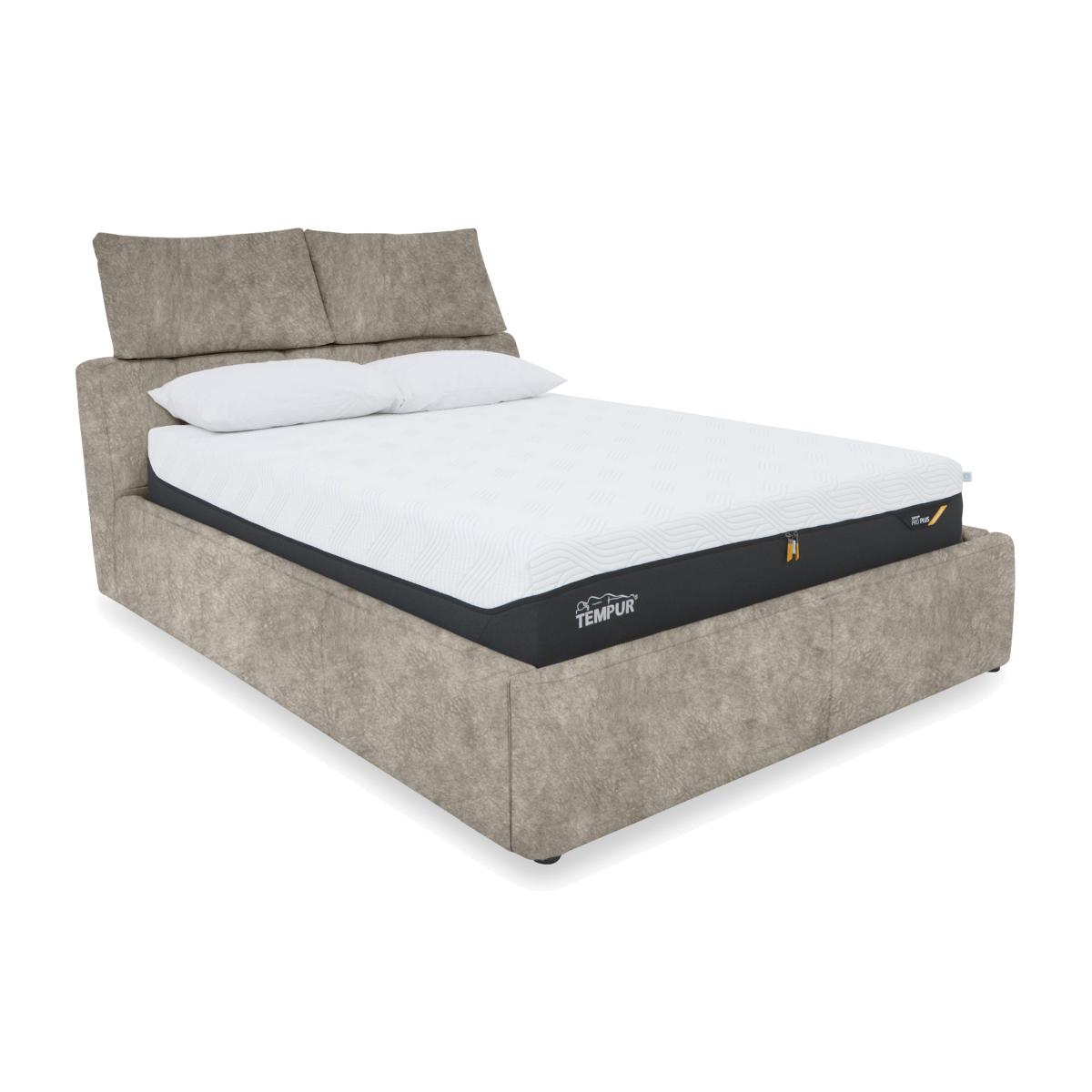 Give your bedroom a contemporary style makeover and treat yourself to spacious extra bedroom storage. Showcasing a fabulous headboard design – double pillow-style headrests that are independently adjustable for perfect-position comfort – the sturdy ottoman bed frames in the Tyrell collection feature maximum-capacity underbed storage spaces. Choose either manual or electric ottoman mechanisms and beautifully tailored upholstery in 100% leather or fabric. The range also includes stylish blanket boxes which double as bedroom seating as well as providing handy extra storage. The Tyrell range is exclusively available at Furniture Village. Enjoy more bedroom storage with this stunning ottoman bed frame. The pillow-style headrest cushions are independently adjustable. Available in a huge choice of fabrics. Why you'll love it Upgrade your bedroom style – and your bedroom storage. Contemporary ottoman bed frame has perfect-position comfort built in. Luxurious pillow-style headrest cushions can be moved up and down. Sprung-mechanism ottoman base with locking feature is easy and safe to open and close. Enjoy maximum capacity storage – the underbed compartment is as large as the bed frame. Perfect for lightweight items like duvets, pillows and clothing. Well-crafted and sturdy. A slatted wood base offers great mattress support. Beautiful fabric upholstery in an incredibly wide choice of on-trend colours. Also available with 100% leather upholstery. In king and super king bed sizes. A Furniture Village exclusive. This fabric manual ottoman bed frame is part of our Tyrell range. What you need to know Mattress sold separately. Maximum mattress weight is 80 kg for both king and super king bed frames. Please keep hands clear of the mechanism when opening and closing the ottoman. Do not sit on the foot end of this ottoman bed frame when opening. Clean regularly using a soft brush or vacuum with the curtain attachment. Deal with any spills promptly. Professional cleaning advised for oil- and grease-based stains. Some fabrics can show wear on areas of more use or in direct sunlight.