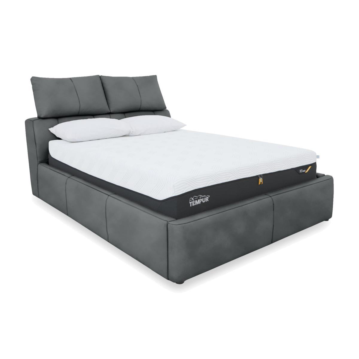 Give your bedroom a contemporary style makeover and treat yourself to spacious extra bedroom storage. Showcasing a fabulous headboard design – double pillow-style headrests that are independently adjustable for perfect-position comfort – the sturdy ottoman bed frames in the Tyrell collection feature maximum-capacity underbed storage spaces. Choose either manual or electric ottoman mechanisms and beautifully tailored upholstery in 100% leather or fabric. The range also includes stylish blanket boxes which double as bedroom seating as well as providing handy extra storage. The Tyrell range is exclusively available at Furniture Village. Enjoy more bedroom storage with this stunning ottoman bed frame. The pillow-style headrest cushions are independently adjustable. Available in a huge choice of fabrics. Why you'll love it Upgrade your bedroom style – and your bedroom storage. Contemporary ottoman bed frame has perfect-position comfort built in. Luxurious pillow-style headrest cushions can be moved up and down. Sprung-mechanism ottoman base with locking feature is easy and safe to open and close. Enjoy maximum capacity storage – the underbed compartment is as large as the bed frame. Perfect for lightweight items like duvets, pillows and clothing. Well-crafted and sturdy. A slatted wood base offers great mattress support. Beautiful fabric upholstery in an incredibly wide choice of on-trend colours. Also available with 100% leather upholstery. In king and super king bed sizes. A Furniture Village exclusive. This fabric manual ottoman bed frame is part of our Tyrell range. What you need to know Mattress sold separately. Maximum mattress weight is 80 kg for both king and super king bed frames. Please keep hands clear of the mechanism when opening and closing the ottoman. Do not sit on the foot end of this ottoman bed frame when opening. Clean regularly using a soft brush or vacuum with the curtain attachment. Deal with any spills promptly. Professional cleaning advised for oil- and grease-based stains. Some fabrics can show wear on areas of more use or in direct sunlight.