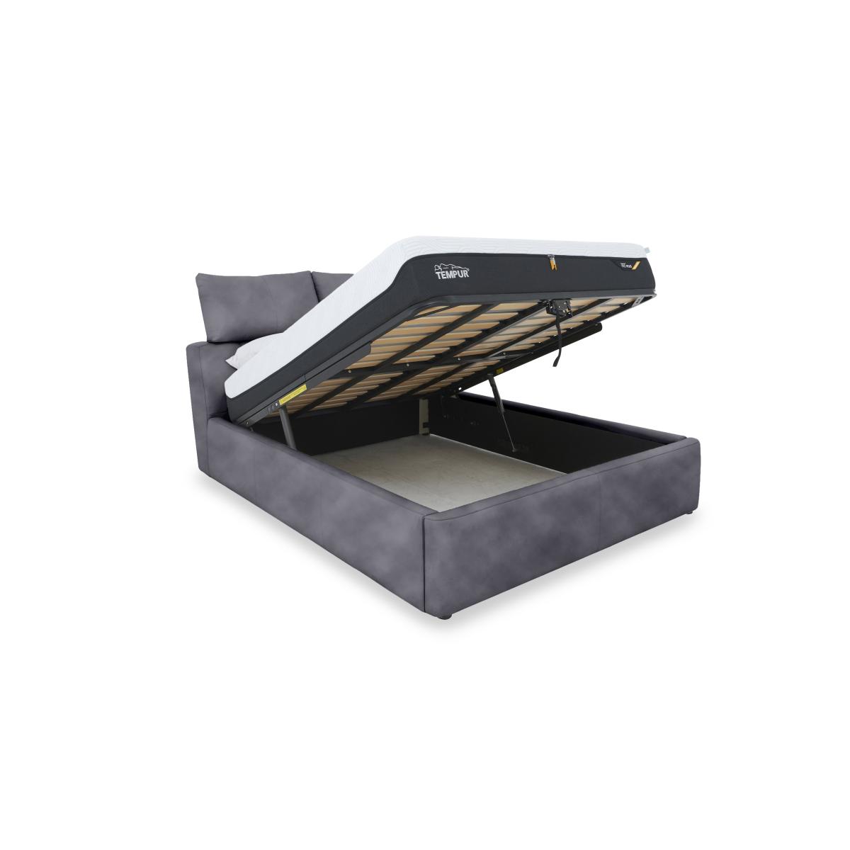 Give your bedroom a contemporary style makeover and treat yourself to spacious extra bedroom storage. Showcasing a fabulous headboard design – double pillow-style headrests that are independently adjustable for perfect-position comfort – the sturdy ottoman bed frames in the Tyrell collection feature maximum-capacity underbed storage spaces. Choose either manual or electric ottoman mechanisms and beautifully tailored upholstery in 100% leather or fabric. The range also includes stylish blanket boxes which double as bedroom seating as well as providing handy extra storage. The Tyrell range is exclusively available at Furniture Village. Enjoy more bedroom storage with this stunning ottoman bed frame. The pillow-style headrest cushions are independently adjustable. Available in a huge choice of fabrics. Why you'll love it Upgrade your bedroom style – and your bedroom storage. Contemporary ottoman bed frame has perfect-position comfort built in. Luxurious pillow-style headrest cushions can be moved up and down. Sprung-mechanism ottoman base with locking feature is easy and safe to open and close. Enjoy maximum capacity storage – the underbed compartment is as large as the bed frame. Perfect for lightweight items like duvets, pillows and clothing. Well-crafted and sturdy. A slatted wood base offers great mattress support. Beautiful fabric upholstery in an incredibly wide choice of on-trend colours. Also available with 100% leather upholstery. In king and super king bed sizes. A Furniture Village exclusive. This fabric manual ottoman bed frame is part of our Tyrell range. What you need to know Mattress sold separately. Maximum mattress weight is 80 kg for both king and super king bed frames. Please keep hands clear of the mechanism when opening and closing the ottoman. Do not sit on the foot end of this ottoman bed frame when opening. Clean regularly using a soft brush or vacuum with the curtain attachment. Deal with any spills promptly. Professional cleaning advised for oil- and grease-based stains. Some fabrics can show wear on areas of more use or in direct sunlight.