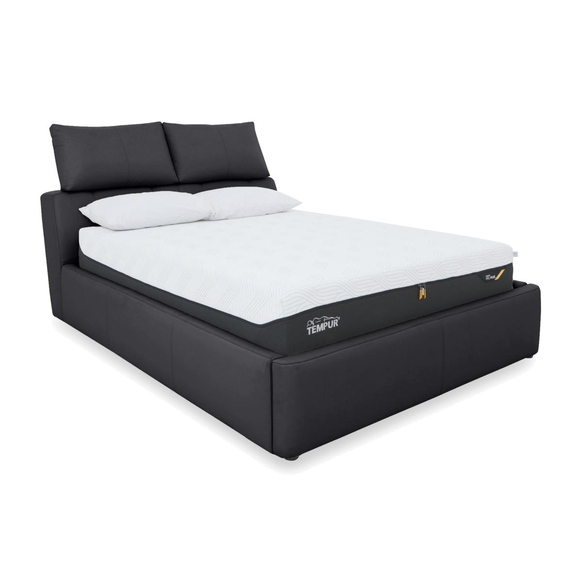 Tyrell HW Leather Manual Ottoman Bed Frame - King Size - Black