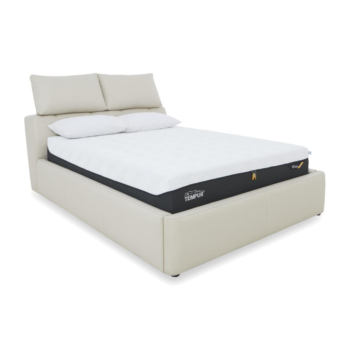 Give your bedroom a contemporary style makeover and treat yourself to spacious extra bedroom storage. Showcasing a fabulous headboard design – double pillow-style headrests that are independently adjustable for perfect-position comfort – the sturdy ottoman bed frames in the Tyrell collection feature maximum-capacity underbed storage spaces. Choose either manual or electric ottoman mechanisms and beautifully tailored upholstery in 100% leather or fabric. The range also includes stylish blanket boxes which double as bedroom seating as well as providing handy extra storage. The Tyrell range is exclusively available at Furniture Village. This leather end-lift ottoman bed base makes relaxing in bed so easy thanks to its adjustable headrest cushions. And the large hidden storage space will keep your bedroom looking tidy. Why you'll love it Upgrade your bedroom style – and your bedroom storage. Contemporary ottoman bed frame has perfect-position comfort built in. Luxurious pillow-style headrest cushions can be moved up and down. Sprung-mechanism ottoman base with locking feature is easy and safe to open and close. Enjoy maximum capacity storage – the underbed compartment is as large as the bed frame. Perfect for lightweight items like duvets, pillows and clothing. Well-crafted and sturdy. A slatted wood base offers great mattress support. Beautiful 100% leather upholstery in an incredibly wide choice of on-trend colours. In king and super king bed sizes. A Furniture Village exclusive. This leather manual ottoman bed frame is part of our Tyrell range. What you need to know Mattress sold separately. Maximum mattress weight is 80 kg for both king and super king bed frames. Please keep hands clear of the mechanism when opening and closing the ottoman. Do not sit on the foot end of this ottoman bed frame when opening. Leather has unique marks and characteristics with variation in colour and texture. Leather softens with use. Deal with any spills promptly. Professional cleaning advised for oil- and grease-based stains.