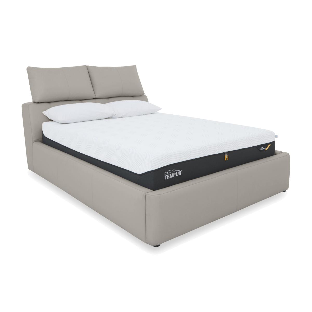 Give your bedroom a contemporary style makeover and treat yourself to spacious extra bedroom storage. Showcasing a fabulous headboard design – double pillow-style headrests that are independently adjustable for perfect-position comfort – the sturdy ottoman bed frames in the Tyrell collection feature maximum-capacity underbed storage spaces. Choose either manual or electric ottoman mechanisms and beautifully tailored upholstery in 100% leather or fabric. The range also includes stylish blanket boxes which double as bedroom seating as well as providing handy extra storage. The Tyrell range is exclusively available at Furniture Village. This leather end-lift ottoman bed base makes relaxing in bed so easy thanks to its adjustable headrest cushions. And the large hidden storage space will keep your bedroom looking tidy. Why you'll love it Upgrade your bedroom style – and your bedroom storage. Contemporary ottoman bed frame has perfect-position comfort built in. Luxurious pillow-style headrest cushions can be moved up and down. Sprung-mechanism ottoman base with locking feature is easy and safe to open and close. Enjoy maximum capacity storage – the underbed compartment is as large as the bed frame. Perfect for lightweight items like duvets, pillows and clothing. Well-crafted and sturdy. A slatted wood base offers great mattress support. Beautiful 100% leather upholstery in an incredibly wide choice of on-trend colours. In king and super king bed sizes. A Furniture Village exclusive. This leather manual ottoman bed frame is part of our Tyrell range. What you need to know Mattress sold separately. Maximum mattress weight is 80 kg for both king and super king bed frames. Please keep hands clear of the mechanism when opening and closing the ottoman. Do not sit on the foot end of this ottoman bed frame when opening. Leather has unique marks and characteristics with variation in colour and texture. Leather softens with use. Deal with any spills promptly. Professional cleaning advised for oil- and grease-based stains.