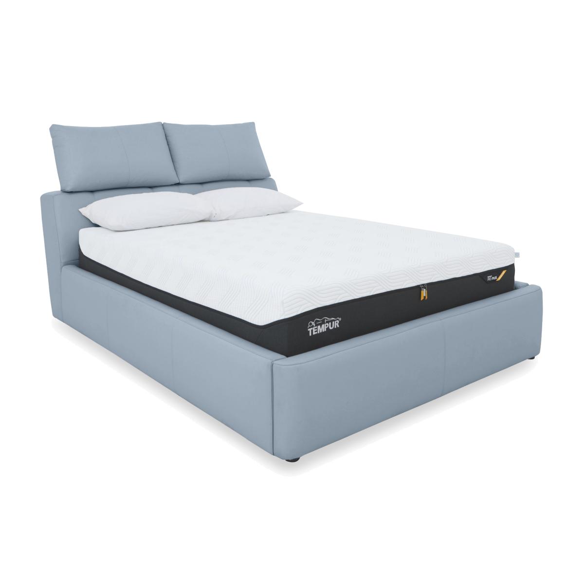 Tyrell NC Leather Manual Ottoman Bed Frame - Super King - Pearl Blue