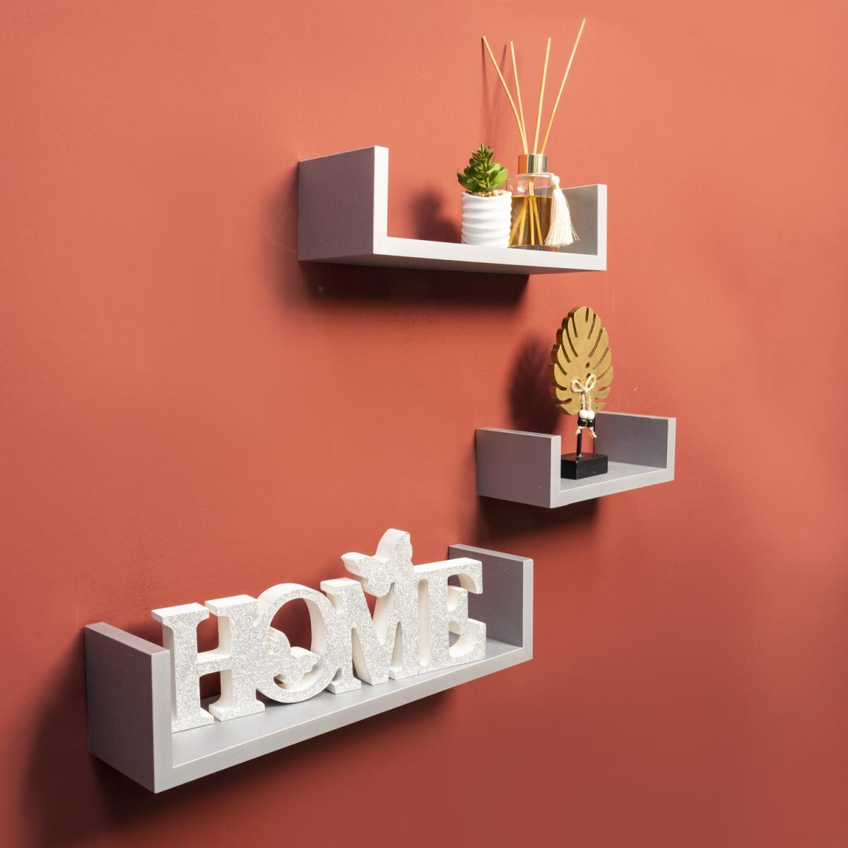 U Shelf Set of 3 Floating Wall Shelves Wall Decoration - Grey