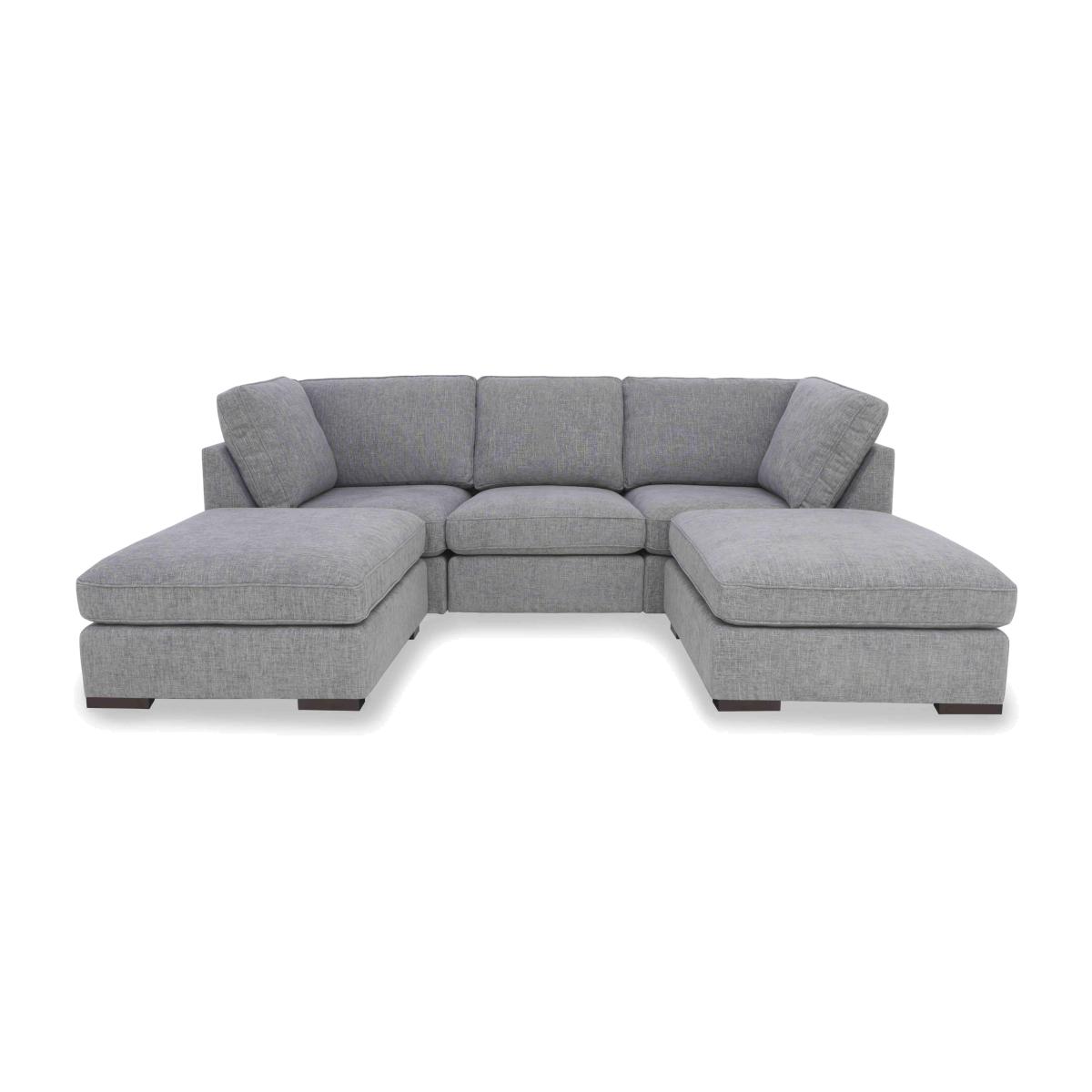 Made for sociable gatherings, cinema-style movie nights and all-day lounging, our Ugo collection of U-shaped sofas sets a new standard in spacious comfort. Large and luxurious, these sofas have two chaise ends – actually two footstools that you can rearrange to suit the occasion – and are designed for all-over and long-lasting comfort. With sprung seating platforms to evenly distribute weight for superior support, pocket sprung seat cushioning, comfortably high backs and so much room to spread out on, it’s impossible not to feel completely relaxed on an Ugo sofa. Upholstered in high-quality fabric in a choice of sophisticated colours, the Ugo range is handcrafted exclusively for Furniture Village. Now this is a sofa. With two chaise ends, sprung seats and pocket spring seat cushions, it's ready for every sociable occasion. Handmade exclusively for Furniture Village. Why you'll love it The perfect sofa for movie nights and all-day lounging. Unique U-shaped design is stylish and sociable. 2 footstools form this sofa’s chaise ends and can easily be reconfigured. Pocket sprung seats cleverly distribute weight for all-over support. Reversible back cushions promise longer-lasting comfort. Top-quality fabric upholstery in a choice of colours. Want something different? Handmade exclusive for Furniture Village. This small U-shaped corner sofa is part of our Ugo range. What you need to know Medium comfort level. Seat suspension: no-sag springs. Seat cushioning: encapsulated pocket springs; foam and Dacron wrap. Back suspension: webbing. Back cushioning: fibre. Feet, arms and back are removable for ease of delivery. Plump and redress back and seat cushions daily. To minimise wear, rotate and alternate seat cushions regularly. Some fabrics can show wear on areas of more use or in direct sunlight. Please read our upholstery care guide for more advice. Clean regularly using a soft brush or vacuum with the curtain attachment. Deal with any spills promptly. Professional cleaning advised for oil- and grease-based stains. Please read our upholstery care guide for more advice.