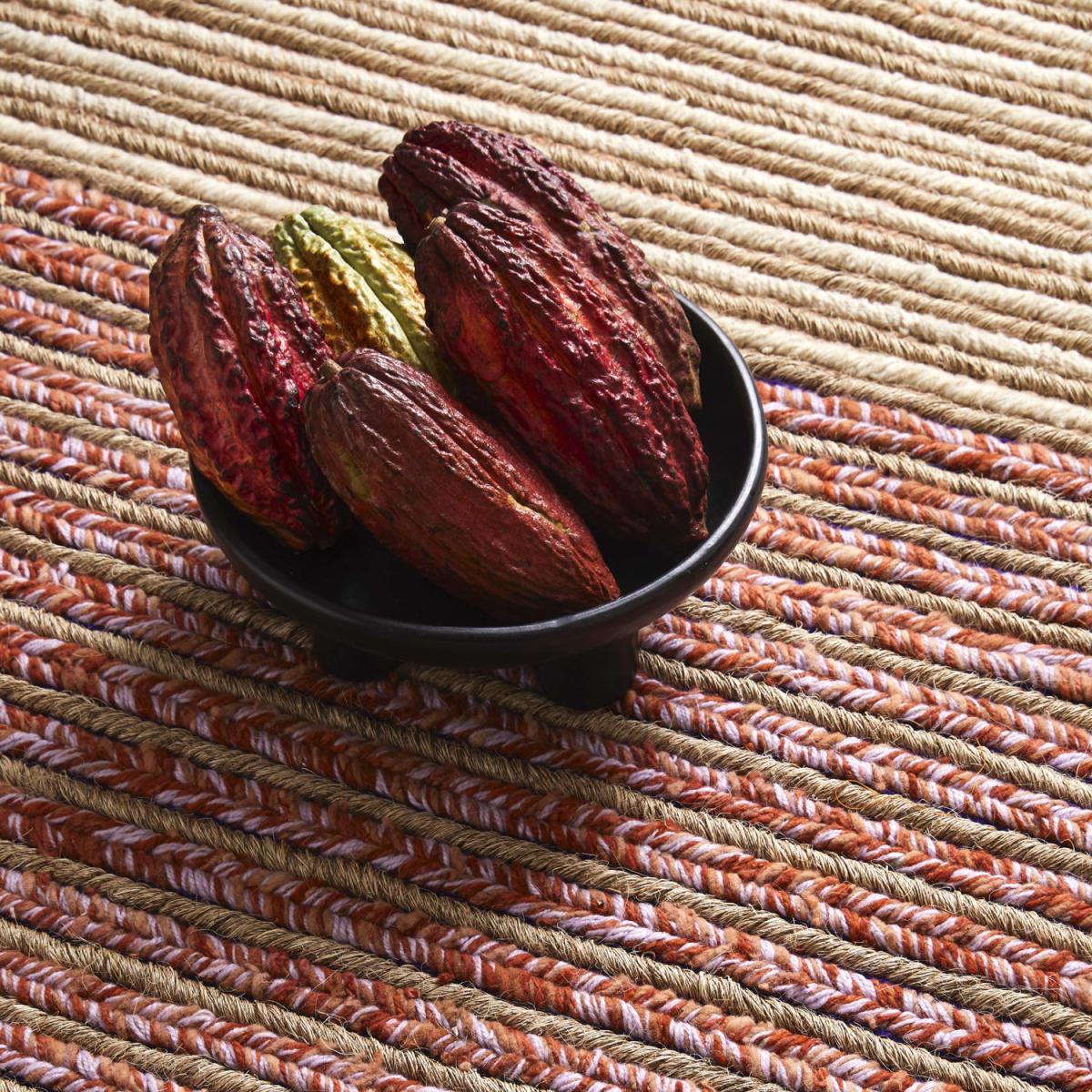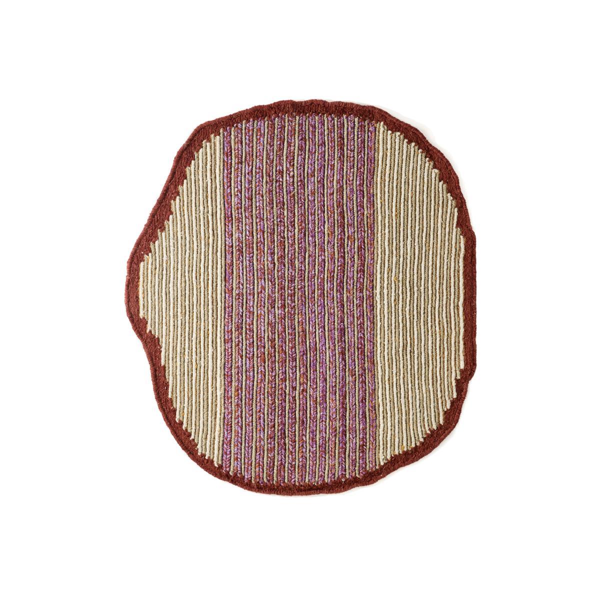 The diversity of Colombia’s landscapes inspired the young Dutch designer Mae Engelgeer for her Uilas rug. The Colombian province of Huila exists on the meeting of two forces of nature: the Rio Magdalena river and the Tatacoa desert. The designer brings the contrasting play of these natural phenomena to life in this rug with its asymmetrical contours, where natural hues are punctuated with subtle touches of vivid colour. The soft colours of the land and the desert meet the blue and green of the Rio Magdalena and its multifaceted floodplains. With its fique fibre, the colours and forms of the desert take shape. 100% natural, this vegetable fibre of Colombian origin comes from the tree of the same name. This sturdy fibre is used in the traditional manufacture of coffee sacks found throughout Colombia. Fique fibre is combined with virgin wool, soft and natural, which symbolises the luxuriance of the river valley. The twisted threads of the two natural materials form colourful stripes and produce an unusual spectrum of colours and brilliance. Uilas rugs are handcrafted in small traditional factories in the Colombian provinces of Santander and Boyacá. The incredible manual dexterity of knotters and weavers is evident in the asymmetrical shapes that give Uilas rugs a fun look.