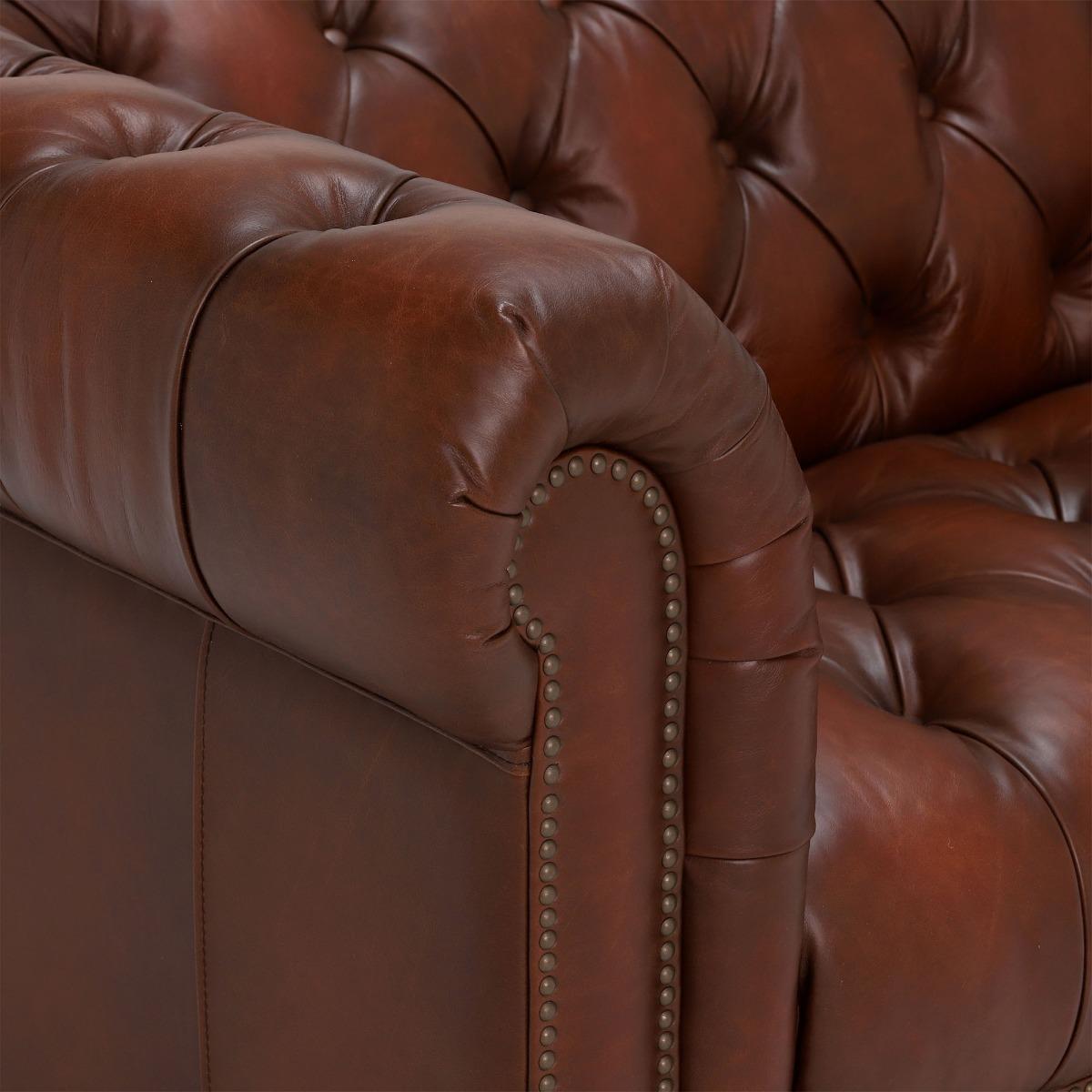 A style that always looks good in gorgeous Vintage Tabac leasther, this mid-century inspired chesterfield has a gorgeous scrolled back and arms that works perfectly with its delicate button-tufting. Sure to catch the eye time and time again, the Ullswater 3 Seater Chesterfield Sofas serpentine spring suspension and luxurious plump foam cushioning offer a supportive comfort, while hand finished stud work and antique castors deliver in the looks department! Not quite what you're looking for? Take a look at the full range of Leather and options available for this item here.