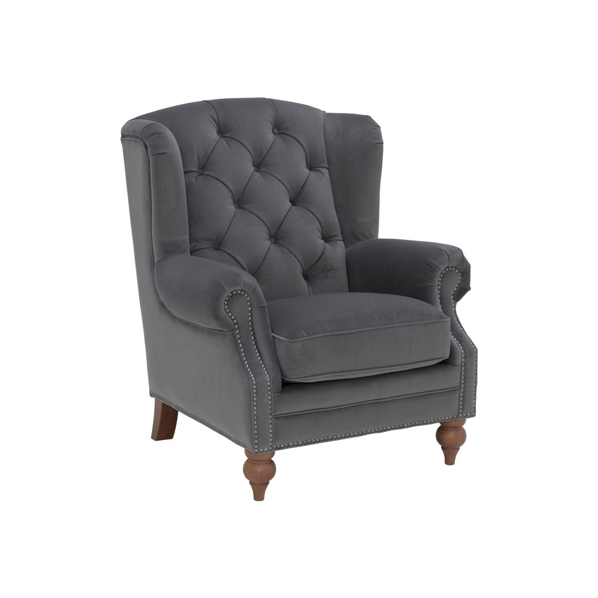 Ullswater Velvet Wing Chair, Grey | Barker & Stonehouse