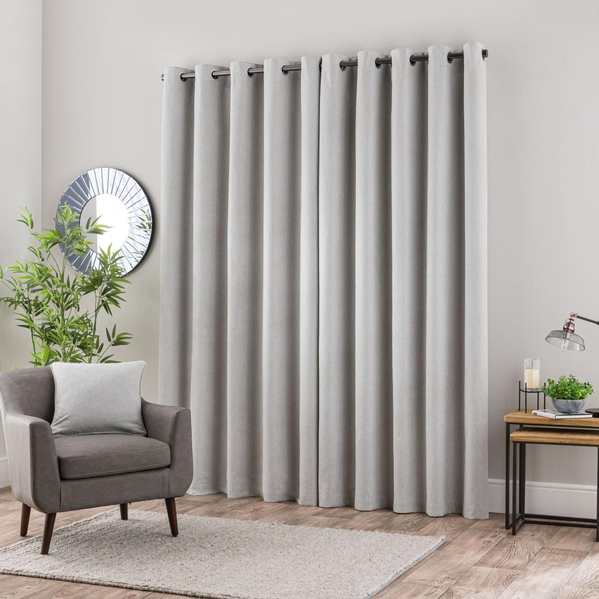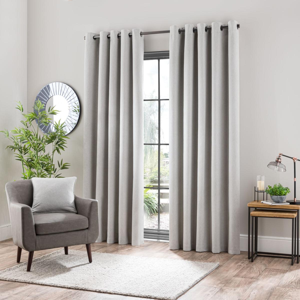* 1 pair - includes 2x curtain panels* Soft brushed luna fabric* 3 x layers of premium blackout coating to reduce external light* Ultra blackout panel to prevent light coming through the eyelets* Thermal properties to help regulate room temperature* Eyelet header Crafted from Luna brushed face fabric, these curtains offer a perfect fusion of style and functionality. Embrace tranquillity and privacy with their blackout finish, effectively diminishing external light and ensuring peaceful rest at any hour. The discreet ultra blackout panel cleverly prevents light from filtering through the eyelets, ensuring a serene ambience throughout the day. Beyond their aesthetic appeal, these curtains feature thermal properties adept at regulating room temperature, keeping cold drafts out in winter and blocking excessive heat during summer. Versatile and adaptable, they seamlessly complement both contemporary and traditional interiors, adding an understated touch of elegance to any space. The modern brushed steel eyelet header ensures easy installation and smooth movement across your curtain pole. The size of the curtains shown is the size of 1 panel, you will receive 2 panels of this size. Choose the width that is closest to your pole length for full look. Why not click [here ](https://www. dunelm. com/info/buying-guides/how-to-measure-for-curtains? utm_source=google&utm_medium=cpc&utm_campaign=Curtains_Measure-Gen_%5BGOO-TXT-CURTAINS-CURTAINS%5D&utm_term=how%20to%20measure%20for%20curtains&gad_source=1&gclid=Cj0K C Qjwzt Ow Bh D7A. R Is APD Knk D-4l Tzsf E Qz7s0. Ecv GTL0 Ns Nxd Qmg4sjf G Jsl G-wk-U Vu Ve T Cwm Y0a Ah9e EA Lw_wc B&gclsrc=aw. ds)to see how to measure your curtains at home!