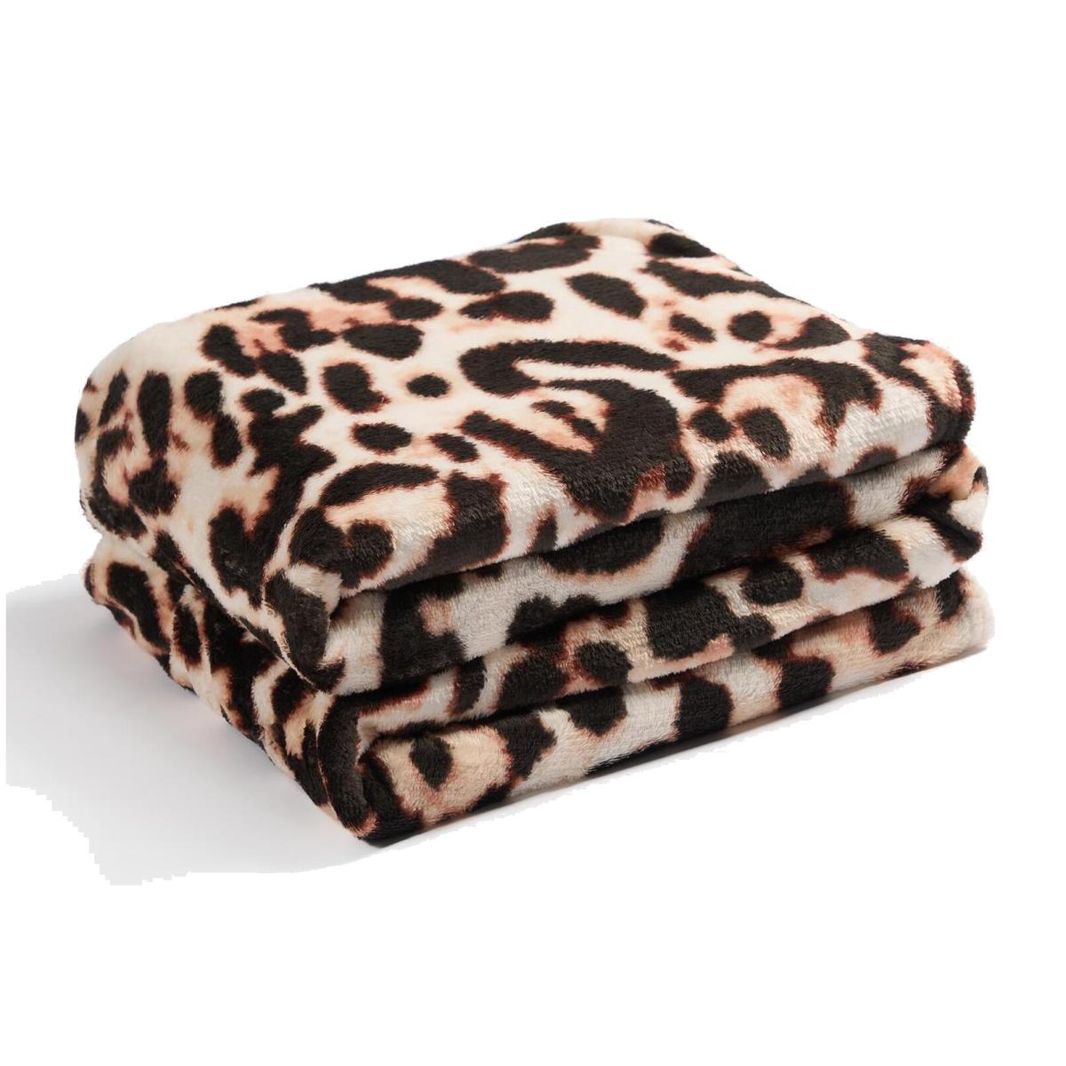 Ultra Soft Leopard Print Throw - Brown