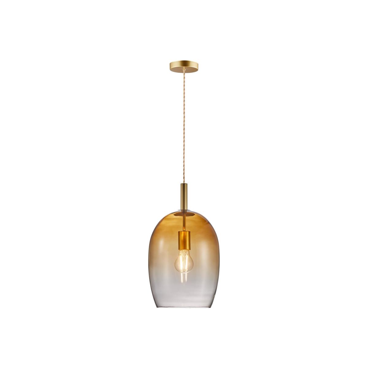 Invite beautiful Uma into your lighting scheme for soft and brilliant light. Designed with a mouth-blown glass shade the Uma 23cm Amber Dome Pendant Ceiling Light has a twisted fabric cable for a unique touch. The modern design is sure to pair wonderfully with your existing fixtures.