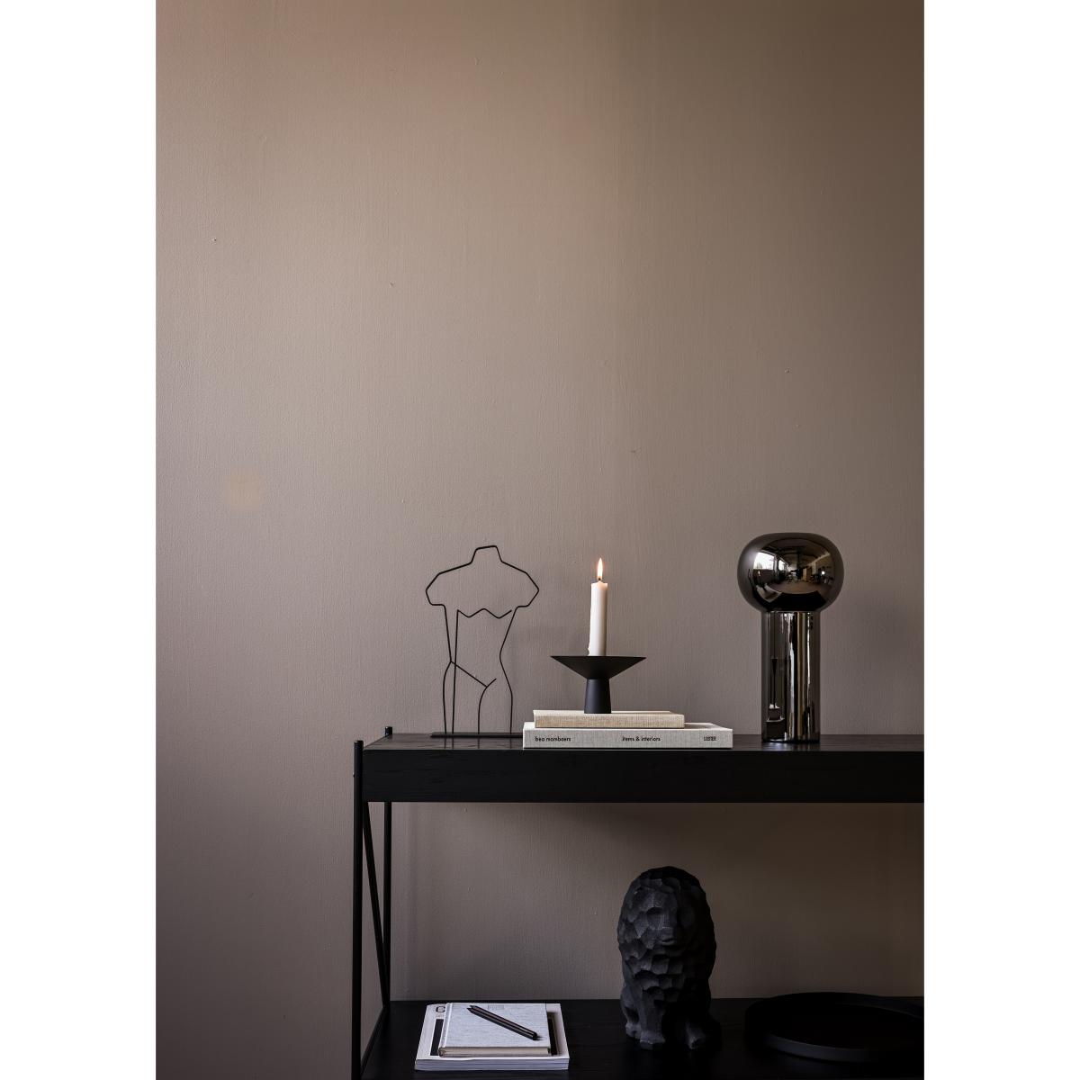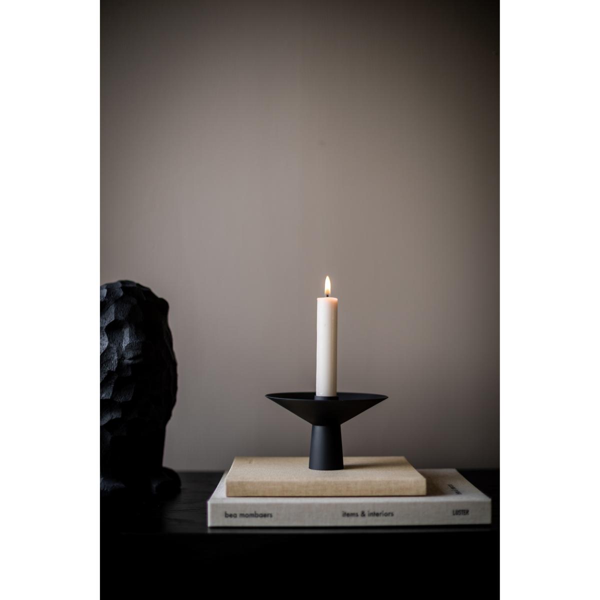 I love the simple yet bold silhouette of this black candle stick, making it a versatile piece that works well in both modern and minimalist interiors. Its matte finish and geometric form create a strong visual statement without overpowering other decor elements. It’s particularly effective when styled on a low coffee table, sideboard, or layered with other candle holders on a dining table for added ambiance. Practical styling tips include pairing it with neutral-toned candles for a subtle look, or mixing with brass or wood accents for a more textured, curated feel. This piece can effortlessly elevate everyday interiors as well as special occasions, thanks to its clean lines and understated elegance.