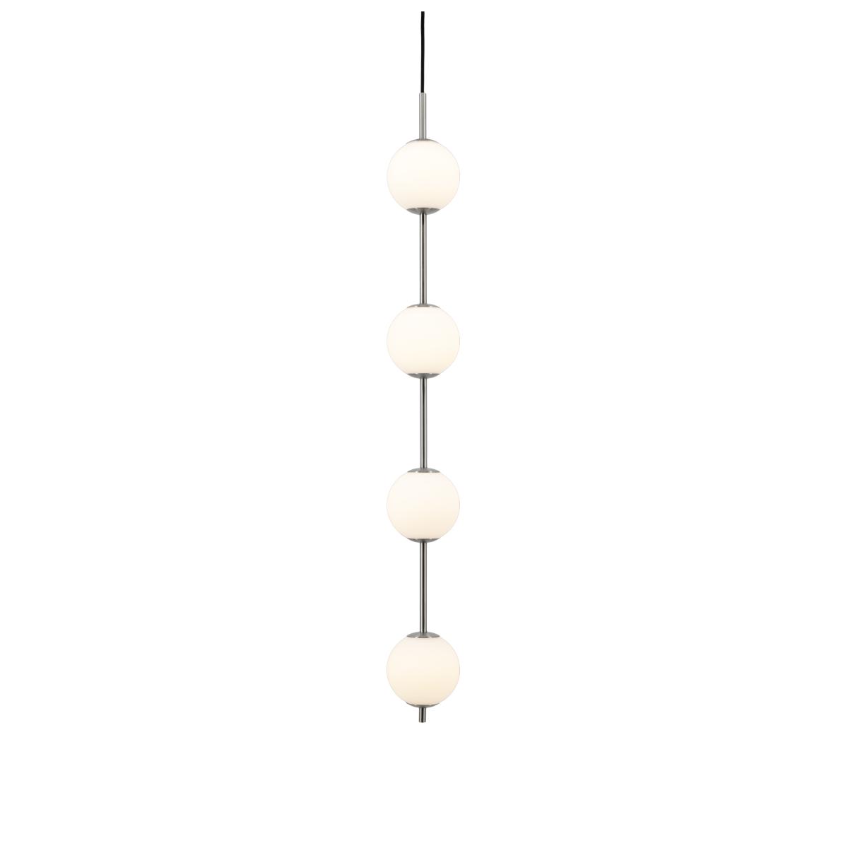 Audrey pendant 4 from Umage is an elegant ceiling lamp in steel with four mouth-blown opal glass globes that provide a soft, atmospheric light. Designed by Søren Ravn Christensen, it combines a minimalist metal frame with rounded globes for a balanced and sophisticated expression. The pendant is dimmable via an external dimmer and is perfect above the kitchen island, dining table, or in the living room as a modern focal point.