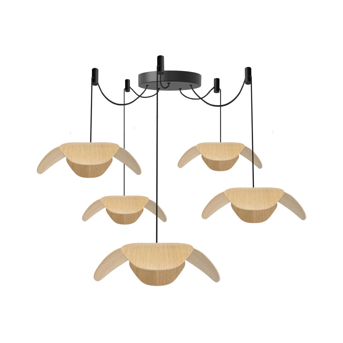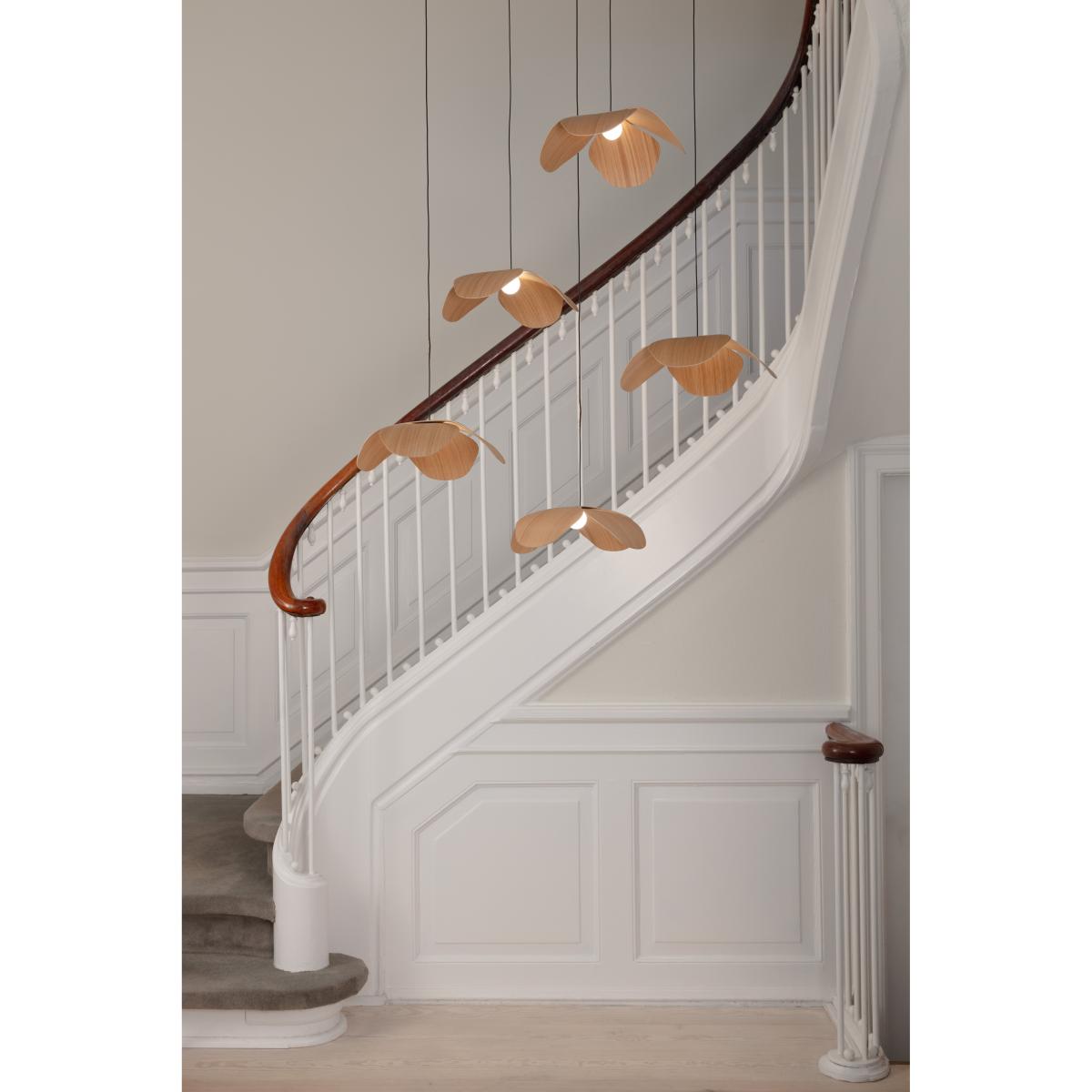 I love this piece for its playful yet modern take on pendant lighting. The large oak clusters add warmth and a natural touch, making it ideal for Scandi-inspired interiors or spaces where you want to create a cosy, welcoming atmosphere. It works particularly well in kitchens, dining areas, or children's rooms, bringing a sculptural element that’s both functional and artistic. When styling, consider hanging it at varying heights for visual interest and pairing it with simple, understated furniture to let the pendant be the focal point. Keep the surrounding décor neutral or organic to highlight the natural wood, and ensure the ceiling height is sufficient to appreciate its full design impact without feeling crowded.