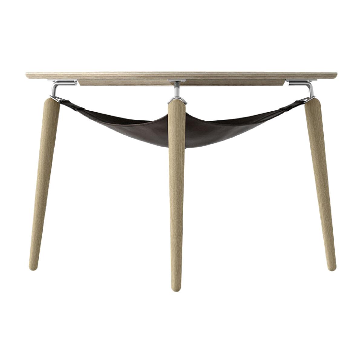 I love this little table for its clever mix of materials-oak and steel-that give it a modern, yet warm aesthetic. It works particularly well in Scandinavian-inspired interiors or minimalistic spaces, where its clean lines and natural wood finish add subtle sophistication. The unique feature, a playful hammock-style shelf underneath, offers practical storage without cluttering the surface, making it ideal for casual, lived-in settings. For styling tips, try placing it in a corner with a couple of cosy reading throws or pairing it with scandi-neutral accessories to enhance its understated charm. It’s versatile enough to work as a coffee table or a side table in both contemporary and rustic environments.