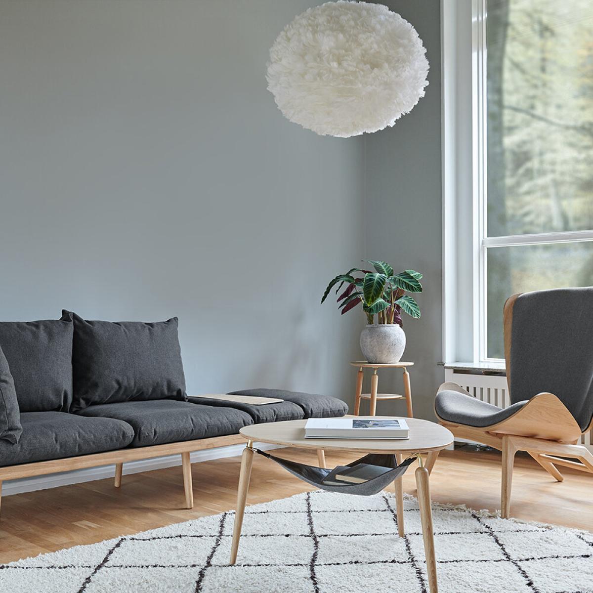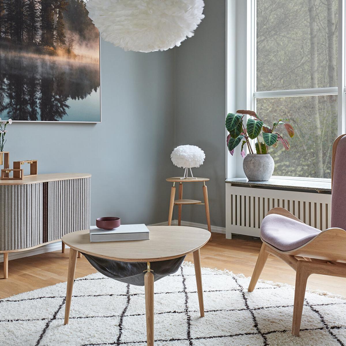 I really like this coffee table because of its minimalist yet versatile design. The natural oak finish adds warmth to a variety of interiors, from Scandi-inspired schemes to modern, eclectic spaces. Its compact size makes it ideal for smaller living rooms or as a side table in a cosy corner. The incorporation of the fabric sling underneath is a clever touch-perfect for casual storage of magazines or small accessories. To style it effectively, consider pairing it with neutral-toned sofas and add textiles or accessories in soft colours to keep the look relaxed. This piece works beautifully in contemporary settings, but also blends well with more traditional or rustic interiors for a balanced, inviting feel.