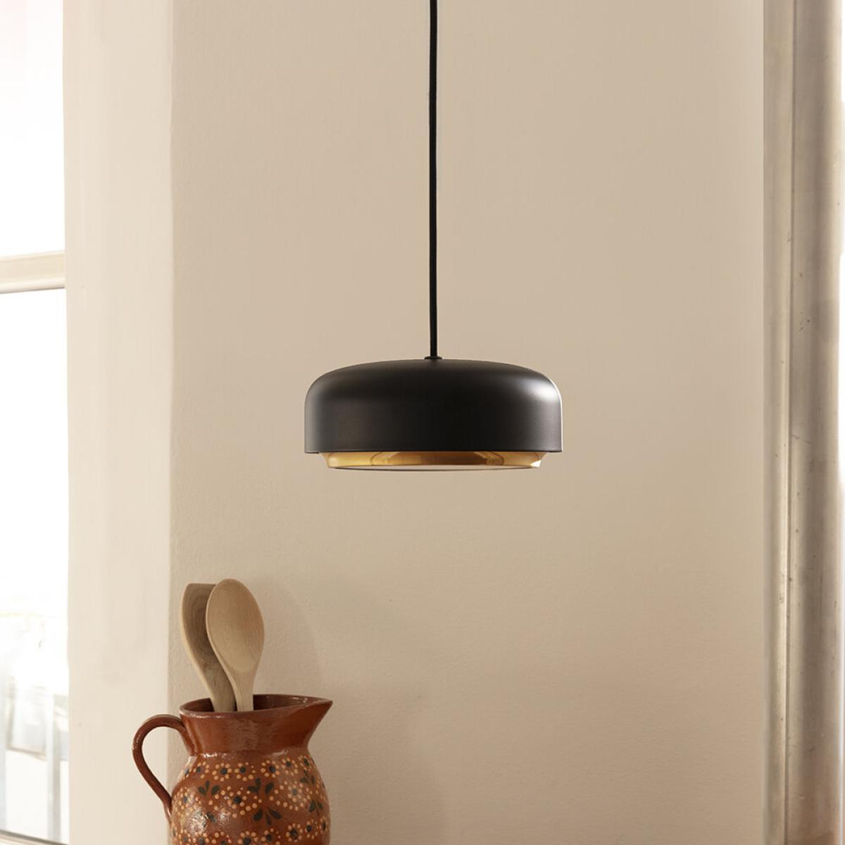 Illuminate your home in style with this Hazel ceiling light from UMAGE. Taking inspiration from the humble hazelnut, it features a smooth, matt black finish with beautiful gold detailing around the rim.