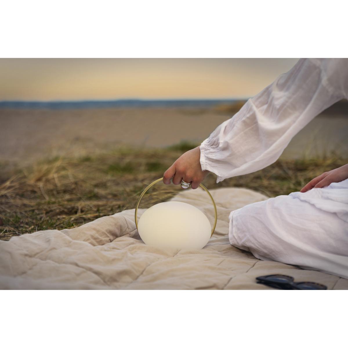 Orbit portable table lamp from Danish Umage has a design inspired by the rotation of the moon around the earth. This off-white lamp has beautiful bronze detailing that makes it easy to carry. With a slight tilt you can turn the lamp on and off or adjust the brightness. Pack your picnic blanket and bring along your Orbit portable lamp to your favourite spot and enjoy the late evening with your friends.