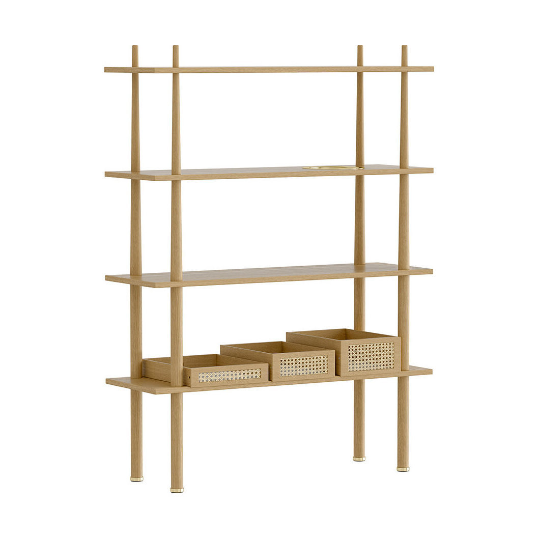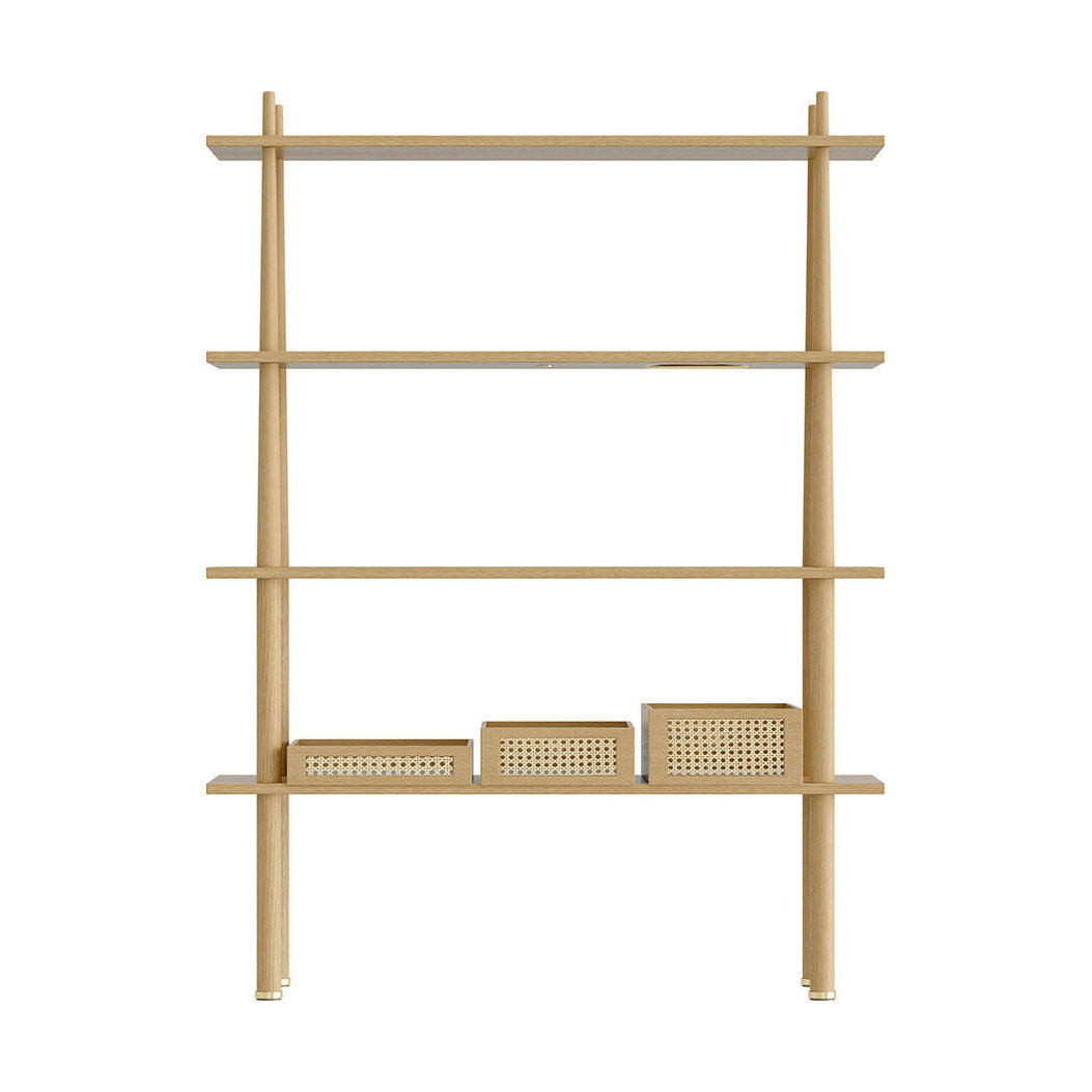 Make a statement with your storage with this Stories shelving from UMAGE. Simply made from oak with a minimalist style, it features four conical legs, four shelves, one which includes a brass plate where you can drop your valuables and three wooden trays. Perfect for displaying and hiding, it’ll look the part in any room of your home.