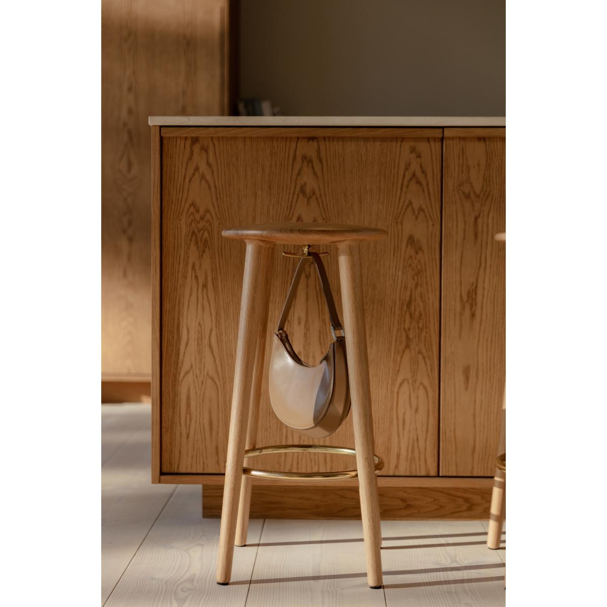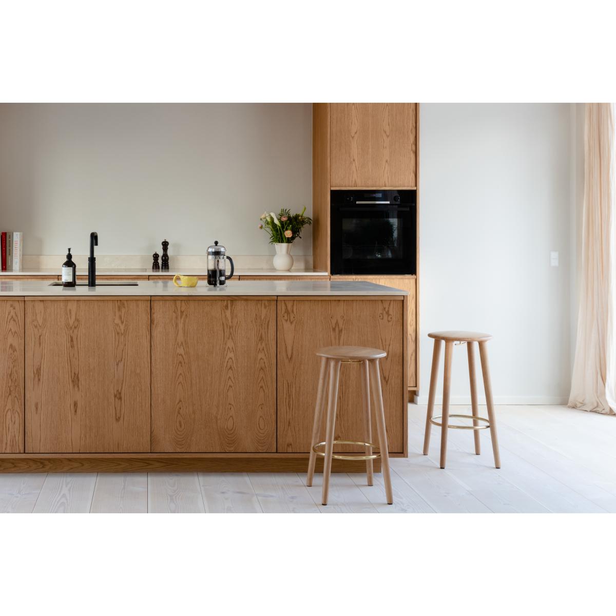 I’m a big fan of this Socialite counter stool in oak for its clean lines and solid build - it feels both sturdy and light under the eye. Its natural timber finish and discreet brass footring slot it neatly into Scandi, Japandi or pared-back modern kitchens, and the height is just right for most islands and breakfast bars. For styling, try pairing two or three stools in a row beneath an open countertop to keep the space uncluttered, or add a simple seat pad or sheepskin drape for extra comfort and a touch of texture.
