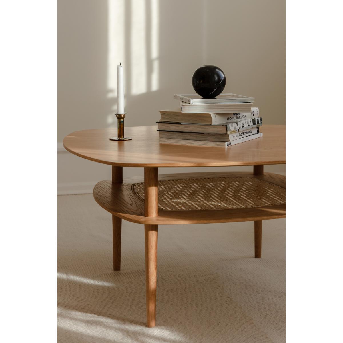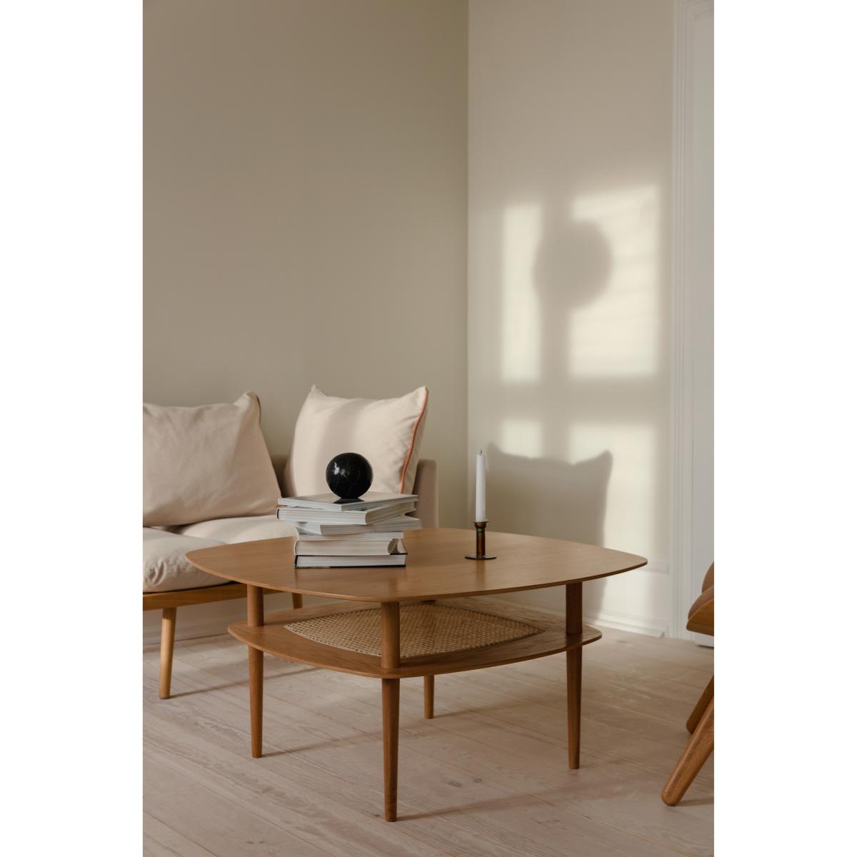 I’m a big fan of the Together table in oak for its clean lines and practical second shelf - it feels both light and substantial at 100×100cm. The soft curves and solid timber legs work particularly well in Scandi-inspired or mid-century modern living rooms, but the neutral oak finish also ties in nicely with coastal or contemporary schemes. Styling-wise, use the lower shelf for a neat stack of coffee-table books or a woven basket for throws, then keep the top surface uncluttered with just a sculptural vase or a tray for remotes and candles. Its generous square shape makes it ideal for anchoring a modular sofa or setting up a cosy chat area with two armchairs.