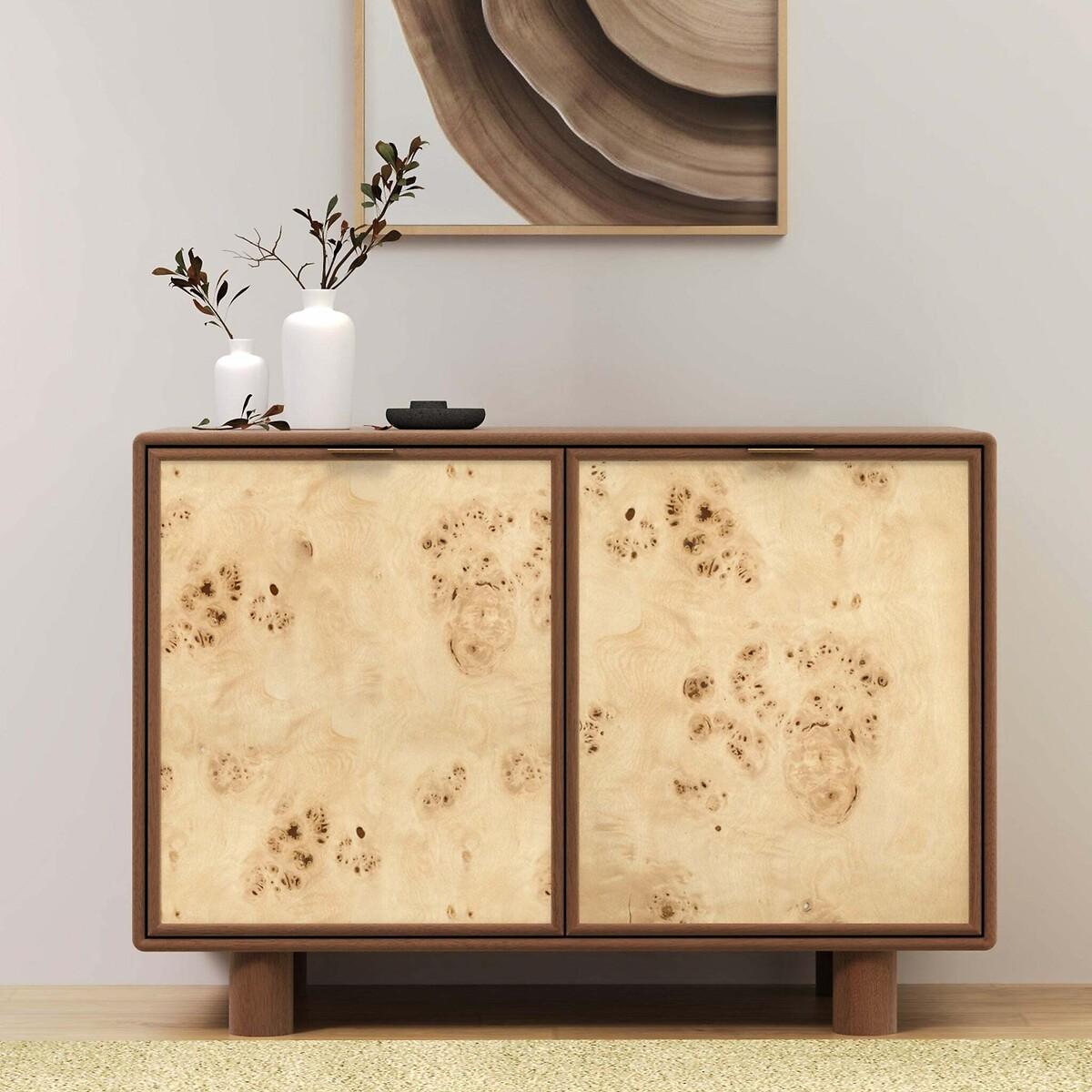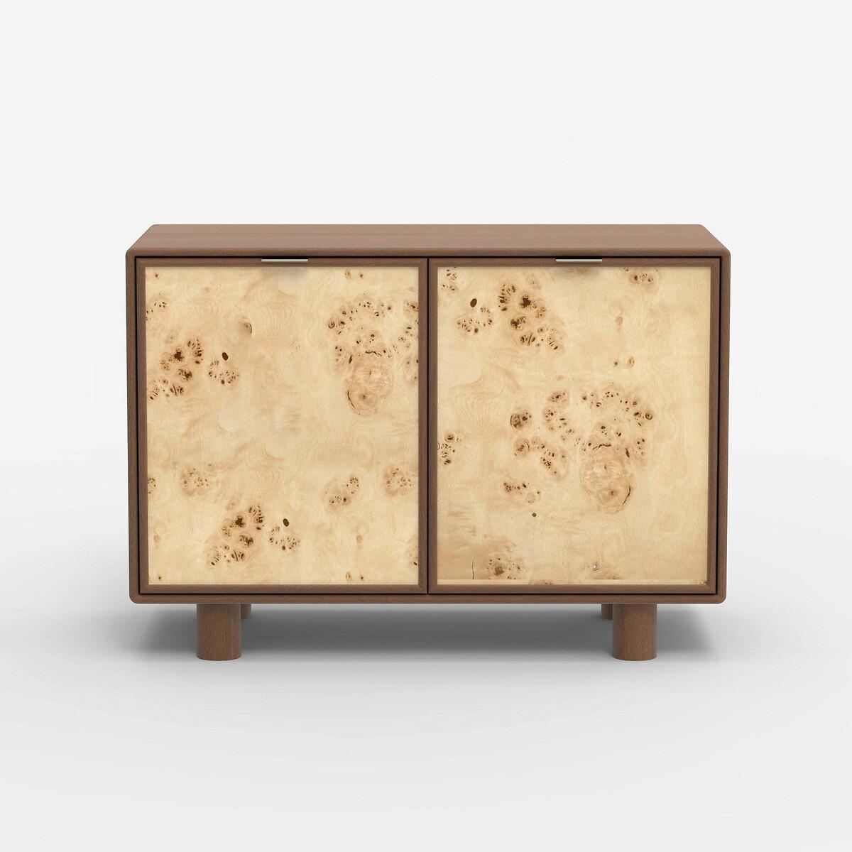 The Metro Burl cabinet is a mango wood masterpiece, featuring a striking burl veneer that highlights its unique knots and rich character. With ample storage concealed behind two doors and supported by sleek legs, it perfectly balances functionality with contemporary style. Ideal for admirers of clean lines and the minimalist elegance of Japandi design, the Metro Burl Collection brings refined simplicity to any space. Product details• Mango wood• Burl veneer panels• Number of drawers:2• Delivered fully assembled - Anti-topple wall fixings included. Product Composition - Mango Wood,Mdf,Veneer. Product Dimensions - 100 cm x 45 cm x 70 cm , Weight - 35.75 KG• Internal drawer: 46 x 38 x 28 cm• Clearance to floor: 10 cm Package Dimensions - 109 cm x 69 cm x 54 cm, Weight 43.82 kg. This product will be dispatched by one of our trusted suppliers. You’ll be contacted by their selected courier about your delivery.