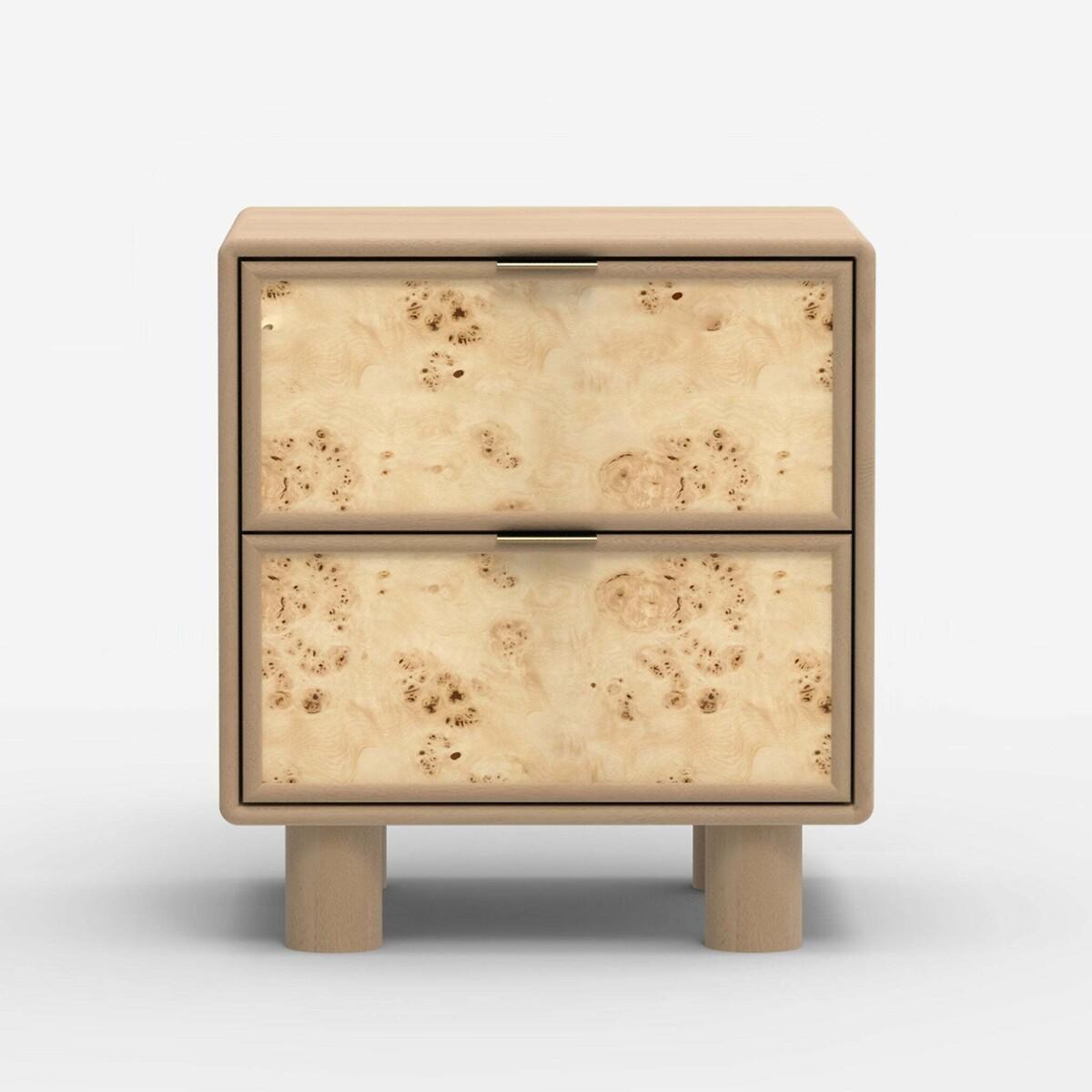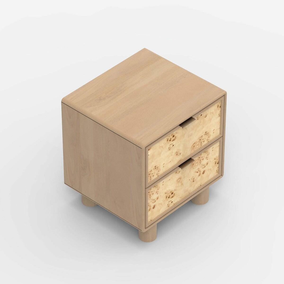 Umber Burl & Mango Wood 2 Drawer Bedside Table