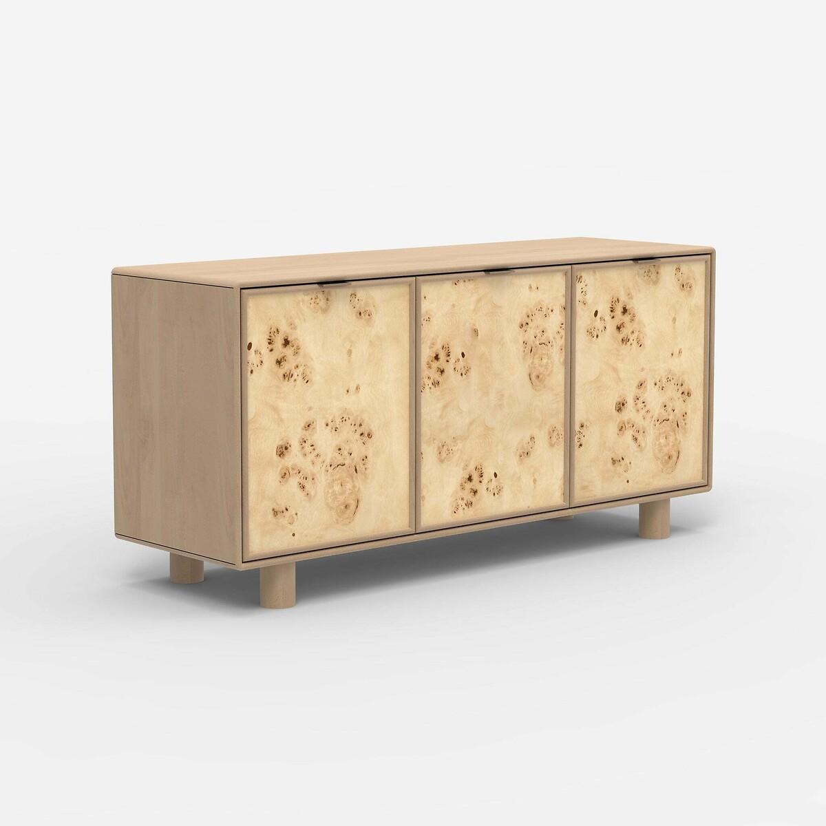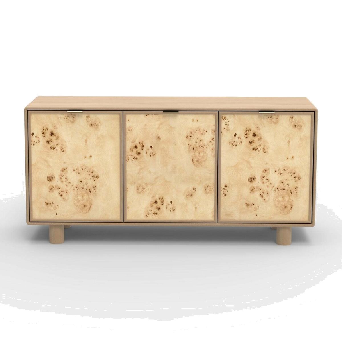 The Metro Burl cabinet is a striking mango wood masterpiece, enriched by a captivating burl veneer that showcases unique knots and natural depth. Behind its three doors lies ample storage, thoughtfully paired with sleek legs that balance function and contemporary elegance. Perfectly embodying clean lines and the minimalist ethos of Japandi style, the Metro Burl Collection is designed for those who appreciate refined simplicity. Product details• Mango wood• Burl veneer panels• Number of drawers: 3• Delivered fully assembled - Anti-topple wall fixings included. Product Composition - Mango Wood,Mdf,Veneer. Product Dimensions - 145 cm x 45 cm x 70 cm , Weight - 50.65 KG• Internal drawer: 46 x 38 x 28 cm• Clearance to floor: 10 cm Package Dimensions - 169 cm x 69 cm x 51 cm, Weight 60.57 kg. This product will be dispatched by one of our trusted suppliers. You’ll be contacted by their selected courier about your delivery.