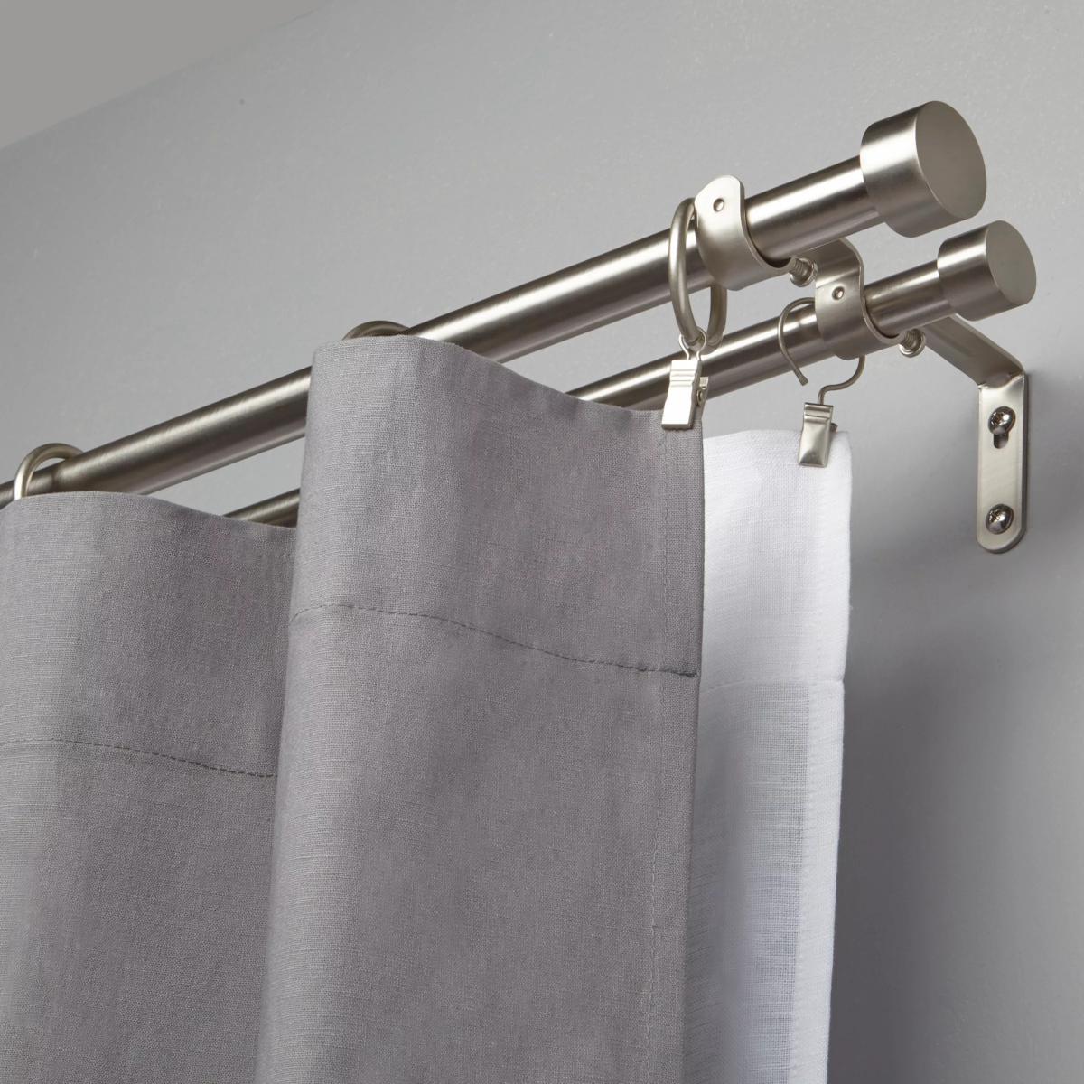 A two tier curtain pole set which allows you to hang curtains and sheers for a layered look at your window. In a contemporary nickel finish they have stud end finials. Be aware the poles can support a maximum of 10kg in weight across both poles.