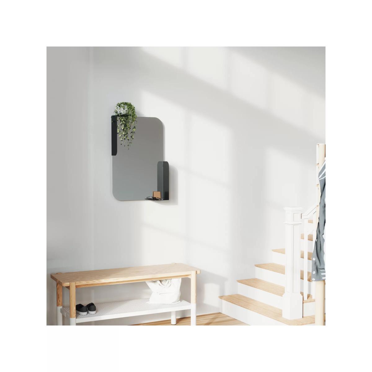 A decorative and functional mirror, Alcove from Umbra features two metal shelves for storage or for displaying small decorative items or plants. A modern design for a hallway, bathroom, bedroom, home office or even the kitchen, it can be wall-mounted vertically or horizontally to suit your wall space. The versatile shelves can be used on either side of the square corners and each shelf can hold up to 1.3kg in weight. Two mirror corners are rounded to create a contemporary look. Easy to assemble, Alcove comes with all the necessary wall-mounting hardware and instructions.