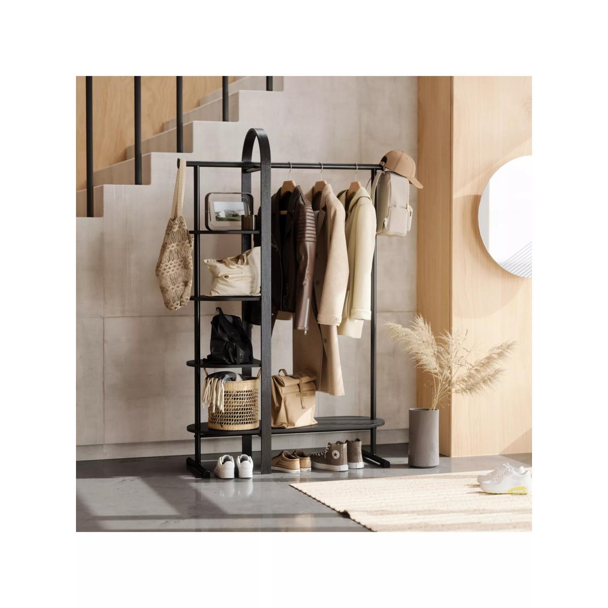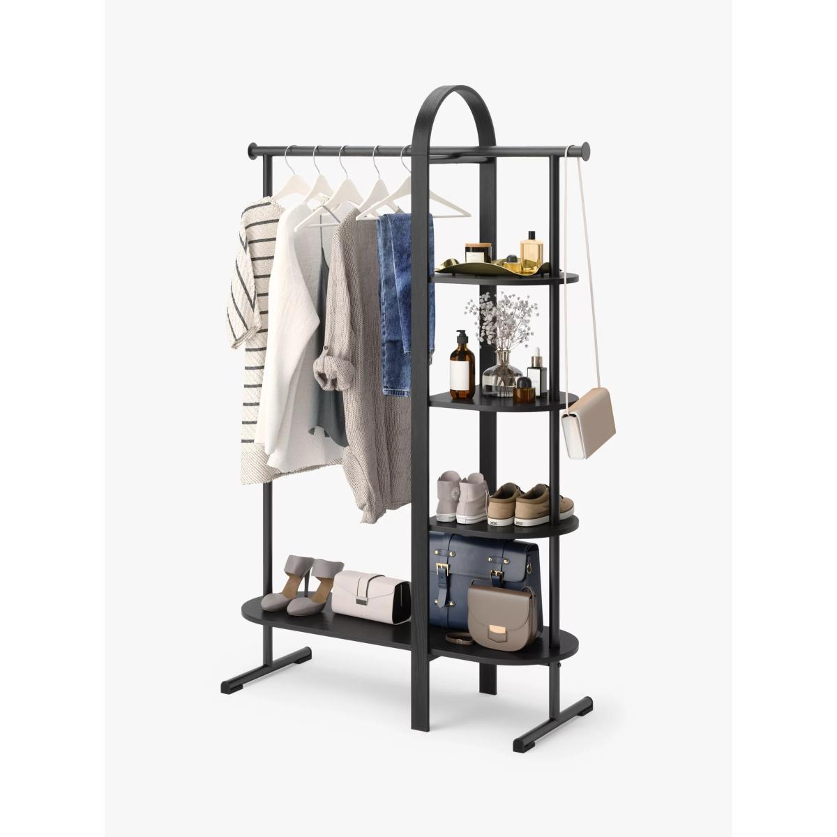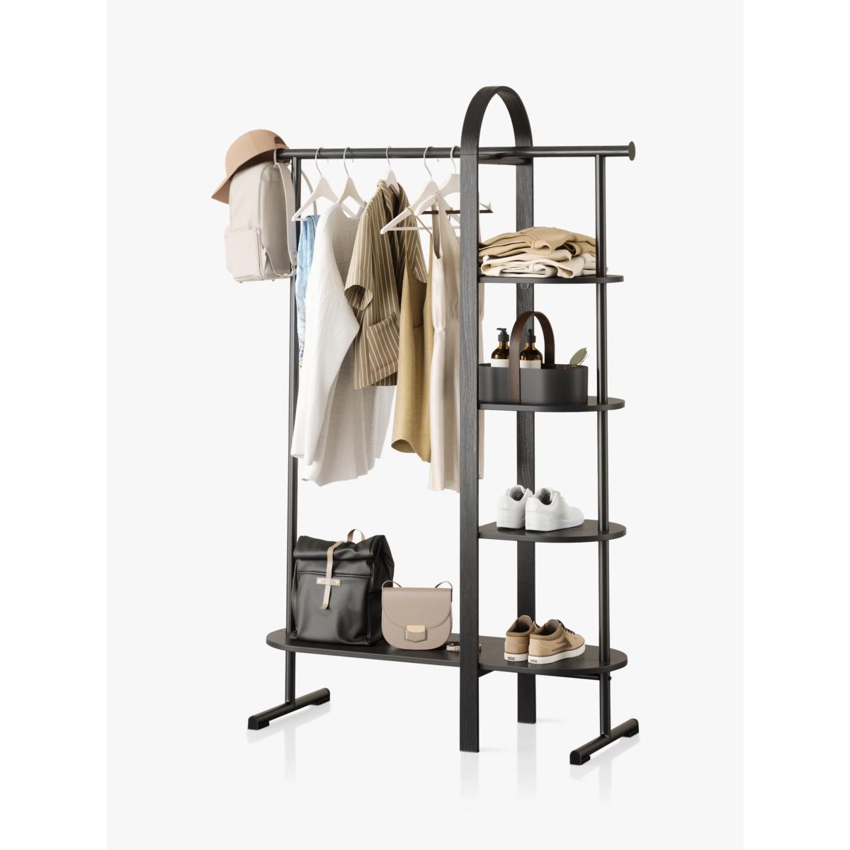 Bellwood mixes soft curves with bentwood accents for a modern and multi-functional clothes rail that's perfect for organizing and displaying your clothes, shoes, bags and other accessories. With four space-saving shelves and integrated steel rod, Bellwood can be used in your bedroom, laundry room, utility room, hallway and more to store and organize your belongings. Max weight capacity 121lbs. (55kg) overall. Please note that wood is a unique natural material with variations in tone, texture, and grain. The product may vary from the imagery.