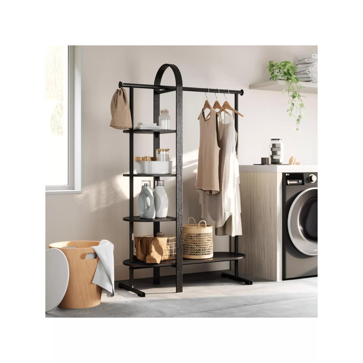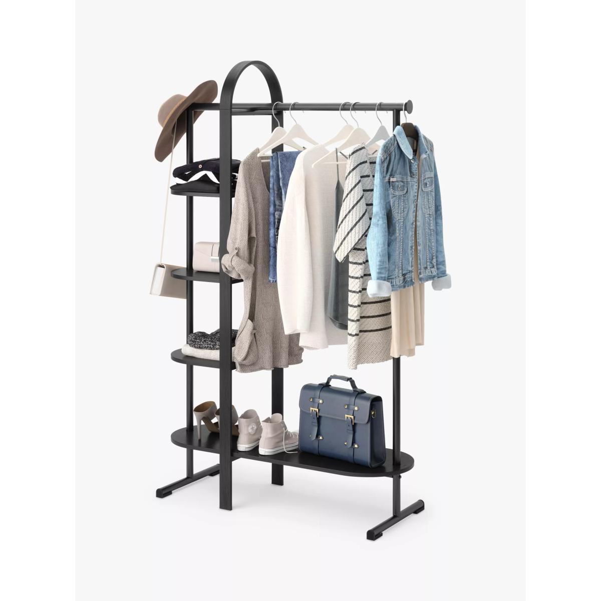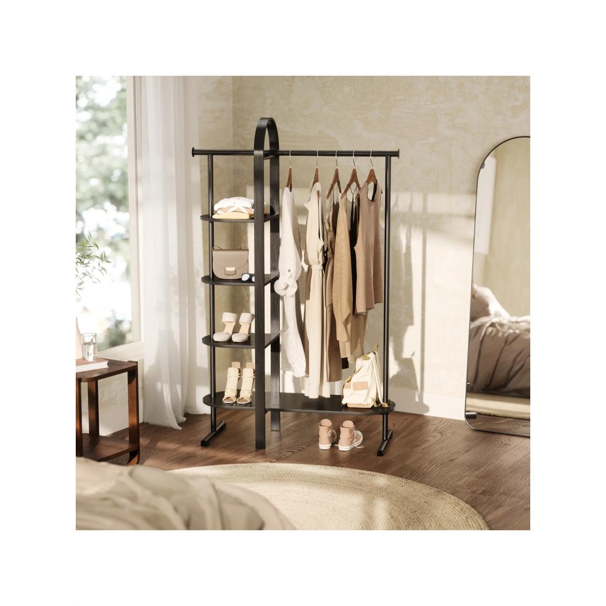 Bellwood mixes soft curves with bentwood accents for a modern and multi-functional clothes rail that's perfect for organizing and displaying your clothes, shoes, bags and other accessories. With four space-saving shelves and integrated steel rod, Bellwood can be used in your bedroom, laundry room, utility room, hallway and more to store and organize your belongings. Max weight capacity 121lbs. (55kg) overall. Please note that wood is a unique natural material with variations in tone, texture, and grain. The product may vary from the imagery.