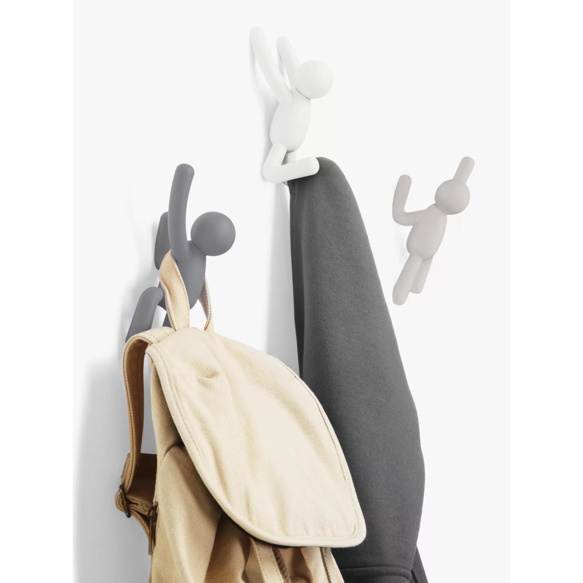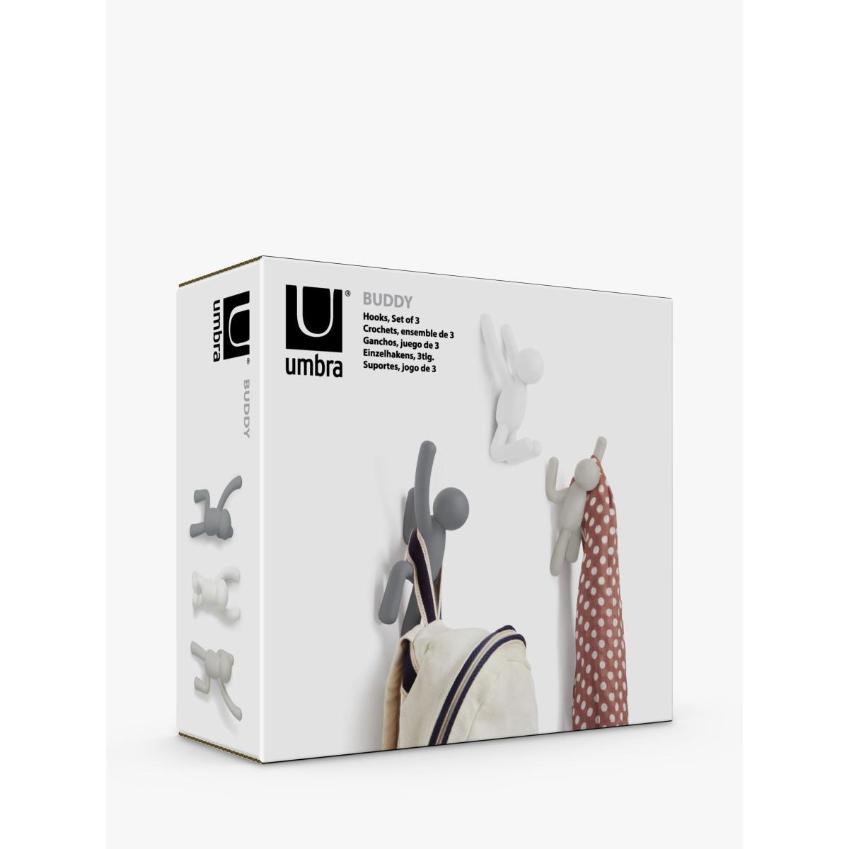 Umbra Buddy Wall-Mounted Coat Hook Hangers, Set of 3, Grey/Multi