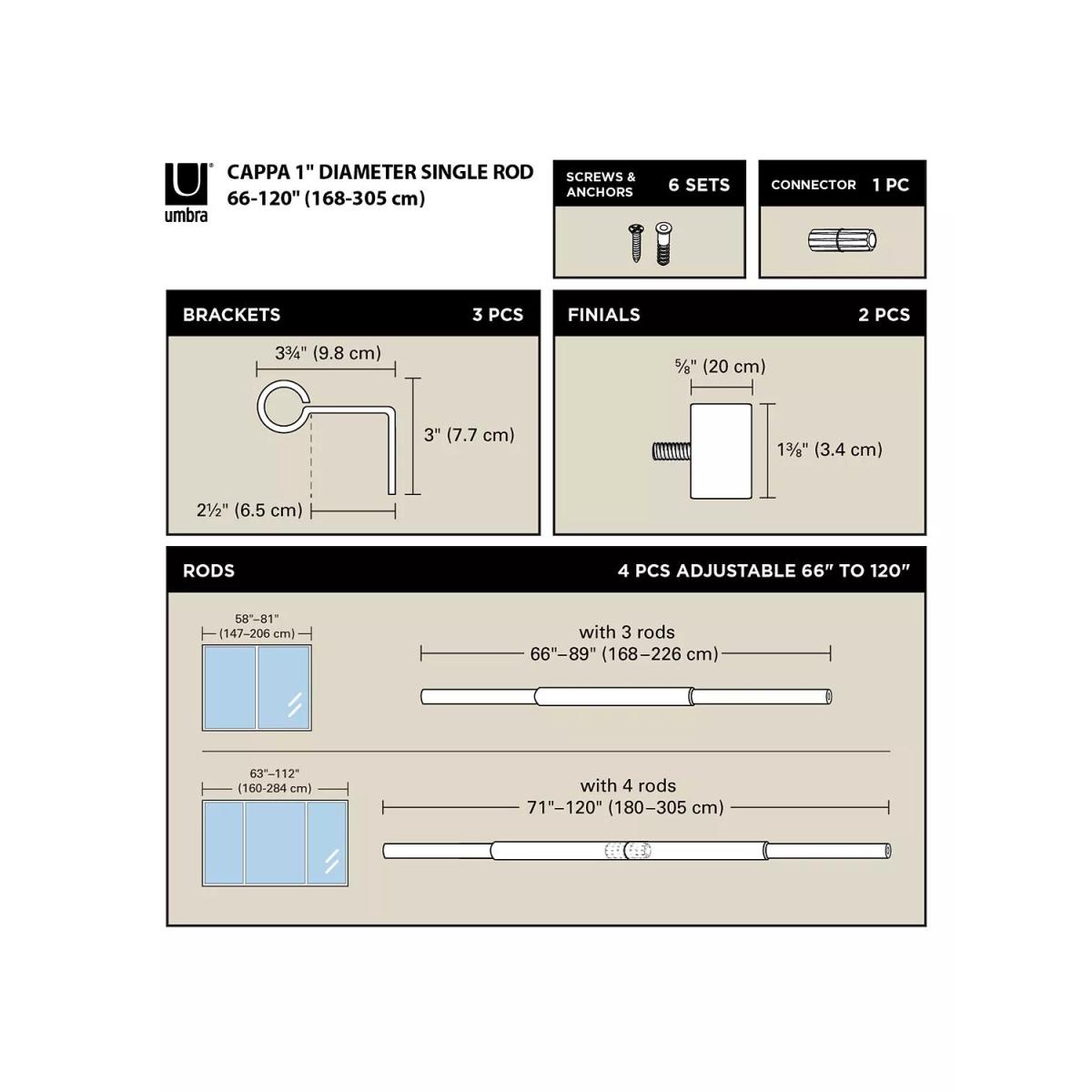 Sturdy and with a versatile design, Cappa supports a variety of window fashions including light to medium weight curtains with a max weight of 10kg. Everything you need to get it set up fast comes in the box including matching finials, adjustable wall-mounted curtain rod brackets, screws, drywall anchors and easy-to-follow installation instructions. This adjustable curtain rod works with a variety of decorating styles and can be used with grommet, back-tab, rod pocket and tab-top curtains. Made with an eco-friendlier finish. It produces 85% less water and solid waste than traditional electroplating finishes. Each Cappa curtain rod is made of high-quality materials and individually checked for quality assurance.