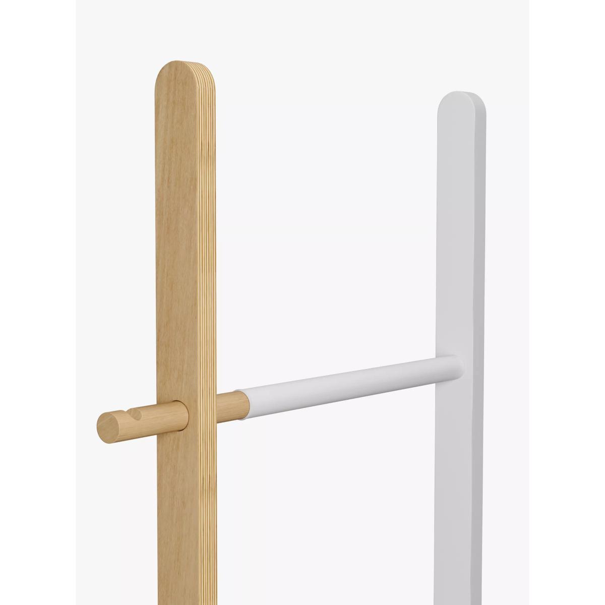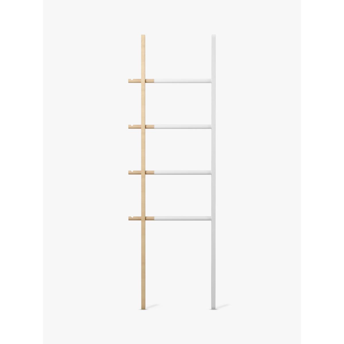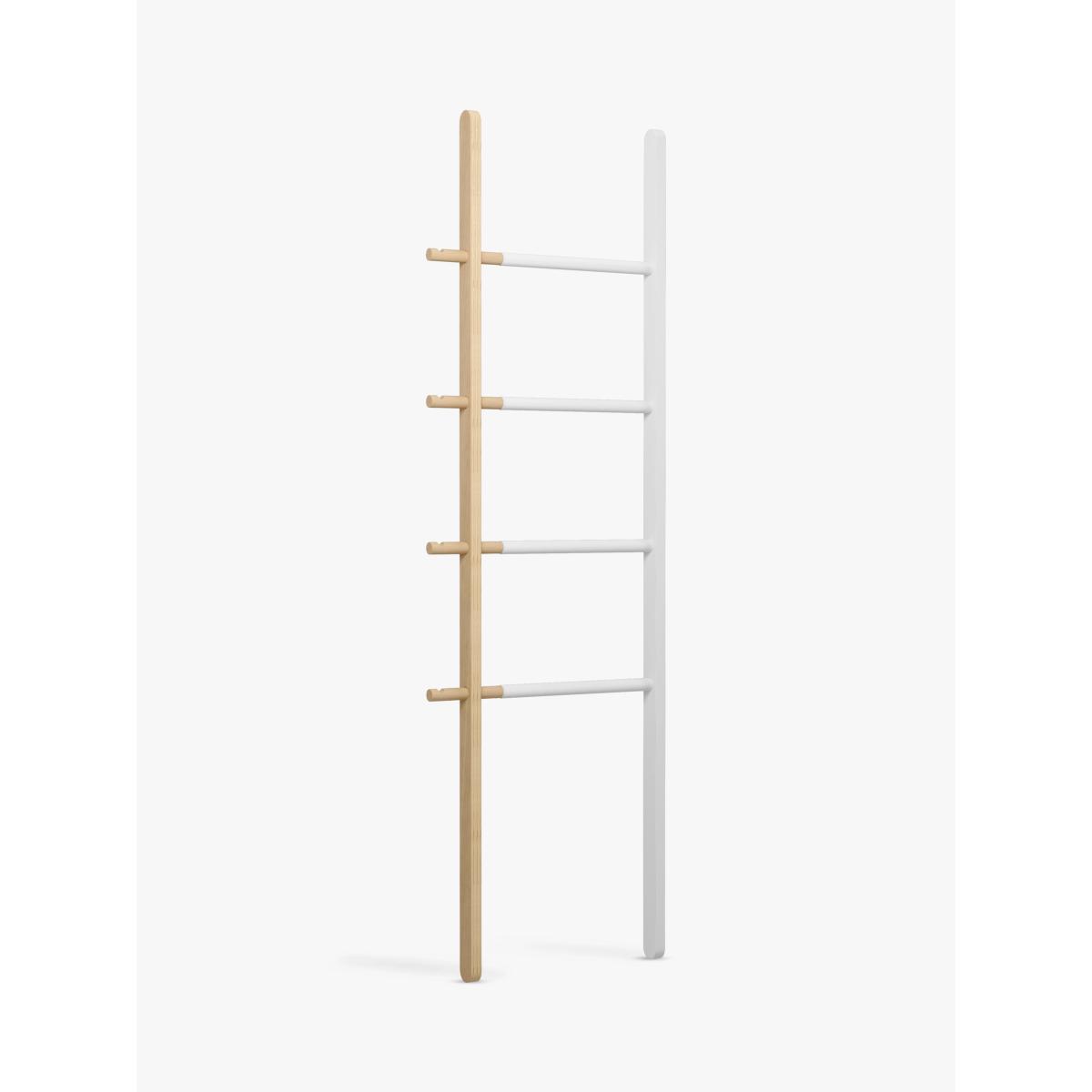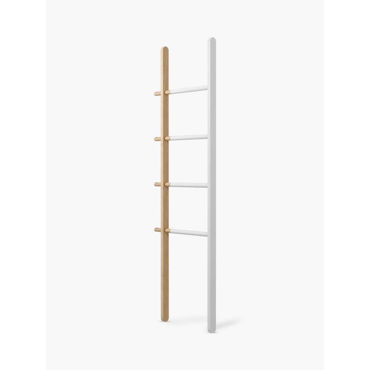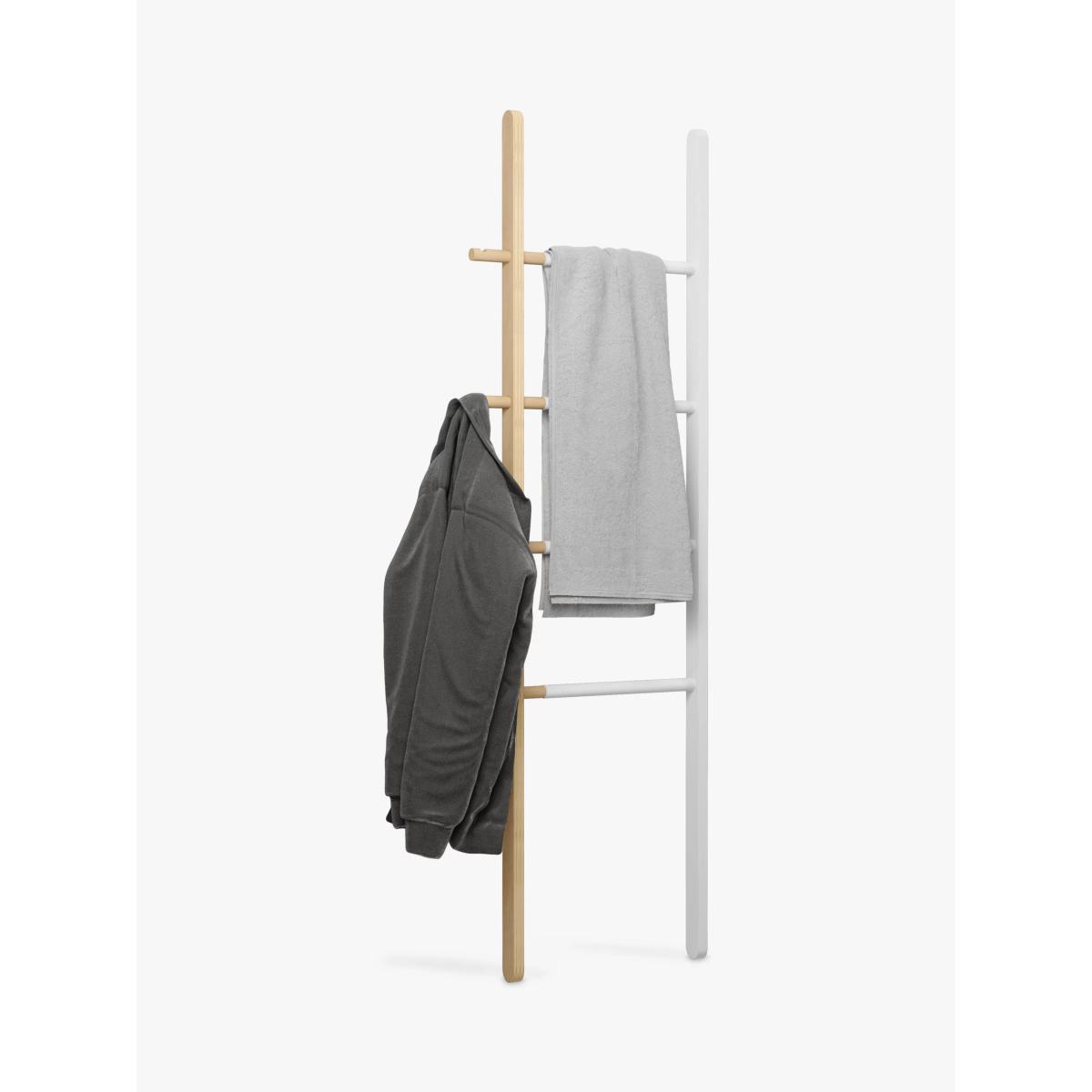 Umbra’s expandable Hub Ladder is a modern, organizational clothes rack that can also be used as a bathroom towel rack or for blanket storage. Great for any room, its adjustable size ensures it fits wherever it’s needed most, expanding to hold larger items such as towels or linens. The Hub Ladder is light-weight, easy to carry, and adjustable, allowing it to fit into large or small spaces. 4 notched hooks running along the sides create extra hanging space. Please note: maximum weight of 0.45kg/5lbs per rail. The Hub Ladder is not intended for climbing.