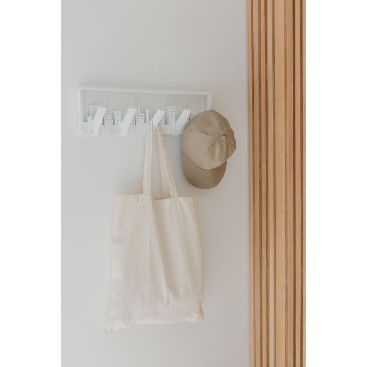 The geometric beauty of urban cityscapes is reflected in this stylish hanging rack, which comes with 5 flip-down hooks. When not in use it provides an engaging piece of wall art. Designed by Helen T. Miller and Tracy Wong. Each hook holds up to 2.3 kg. Mounting hardware included.