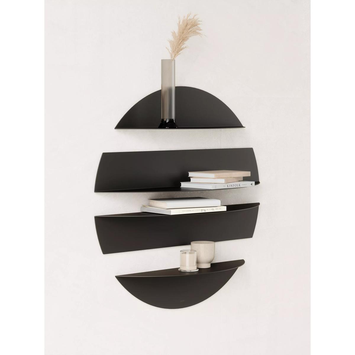 A striking wall display that doubles as storage, Solis from Umbra features two large and two smaller shelves made of durable steel. Each shelf can be mounted individually or placed together. Each shelf can also be mounted with the shelf surface facing upwards or downwards. Use Solis to display or store books, decorative items, candles, picture frames and more. The small shelf load capacity is 10 lbs (4.5 kg) and the large shelf is 15lbs (6.8 kg).