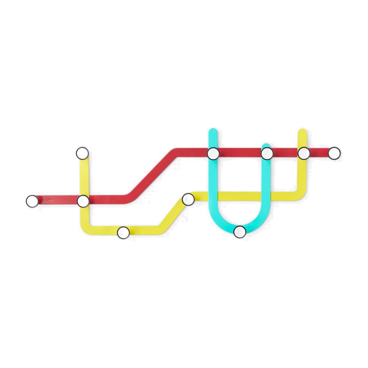 This decorative, wall-mounted coat hook, inspired by subway and tube maps, is as colourful as it functional. It has 10 hooks for hanging accessories, scarves, jackets and keys in the hallway or clothing in a bedroom. Made of coated metal, the finish ensures your items won't get scratched or snag. Fittings are included for wall mounting and each hook holds up to 2.3kg.