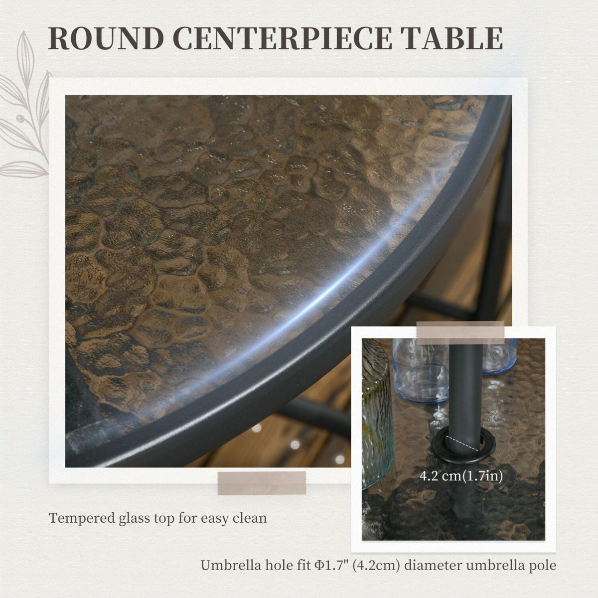 Umbrella Hole Glass Round Table Rattan Dining Sets - Grey