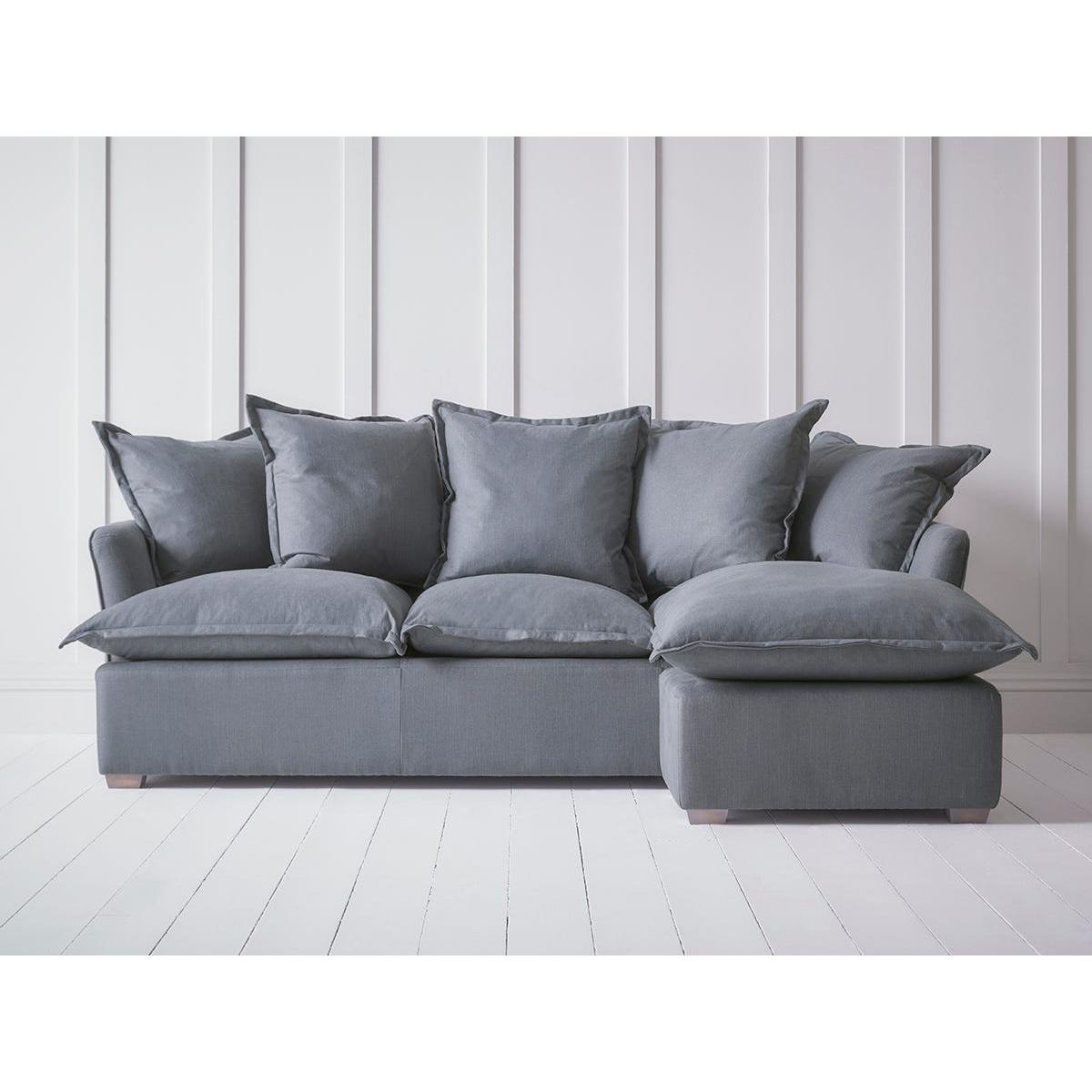 Designed for movie marathons and Sunday afternoon snoozes, our Umea range of made to order upholstered furniture offers inviting and squishy seating you can truly sink into. Sculpt those loosely stacked back cushions to establish the perfect sitting or reclined pose and breathe deep into their supportive comfort. Smart Oxford style pillow case edges to the back and seat cushions smarten up the relaxed look and deeper seats offer extra legroom. This collection offers levels of comfort that makes the occasional plumping session to keep those feather cushions fluffy and fresh feeling a pleasure. The chaise sofa features modern English low arms, feather filled removable and reversible seat and back cushions and polished square tapered wooden legs. The chaise end can be placed to either the right and the left hand side and also separated from the body of the sofa. The Umea range includes a chaise sofa, two seater and three seater sofas, a loveseat, an armchair and an ottoman. Our Umea collection can be upholstered in a choice of 34 distinctive shades and six fabrics to suit your style. Read our Upholstery FAQs View our full Upholstery Terms and Conditions
